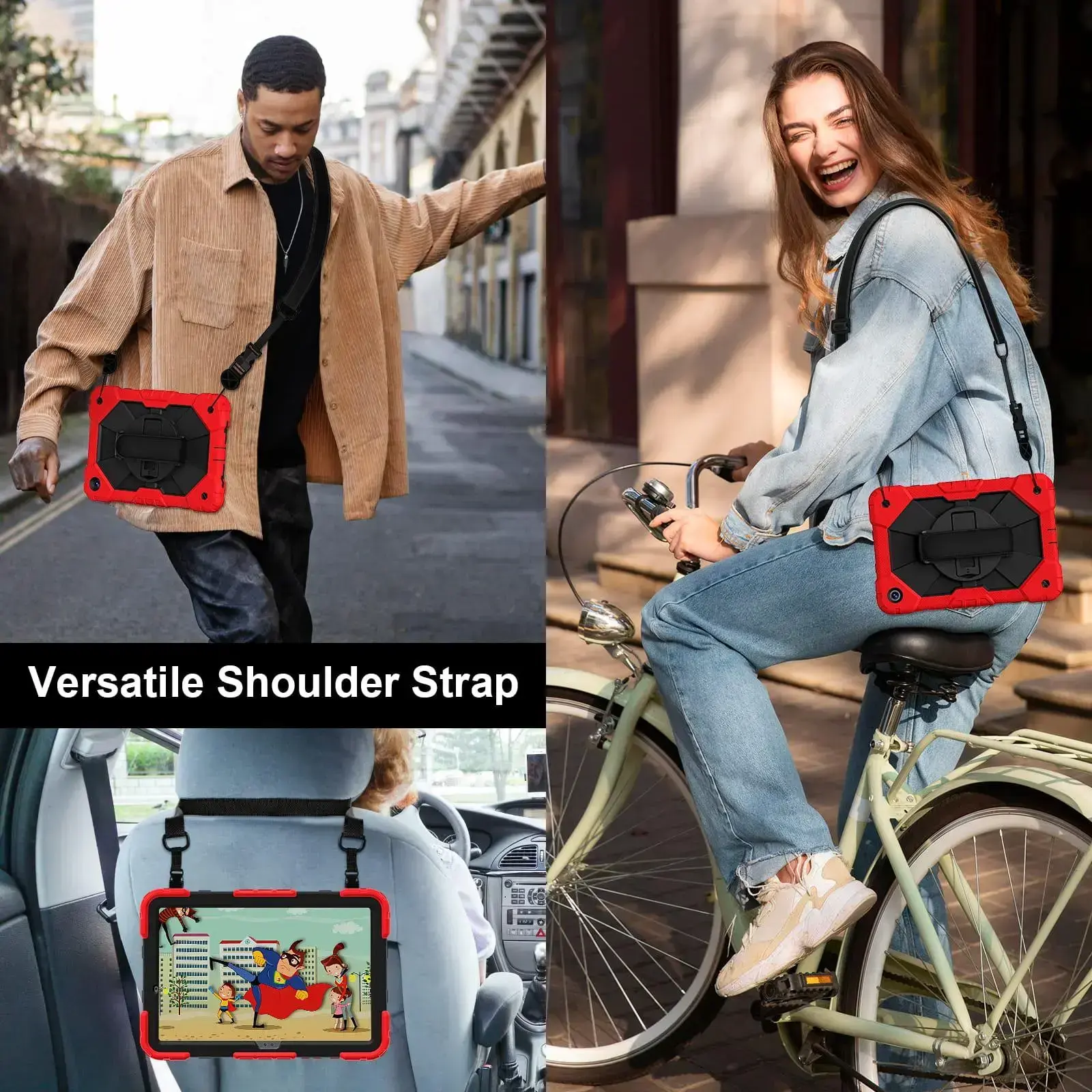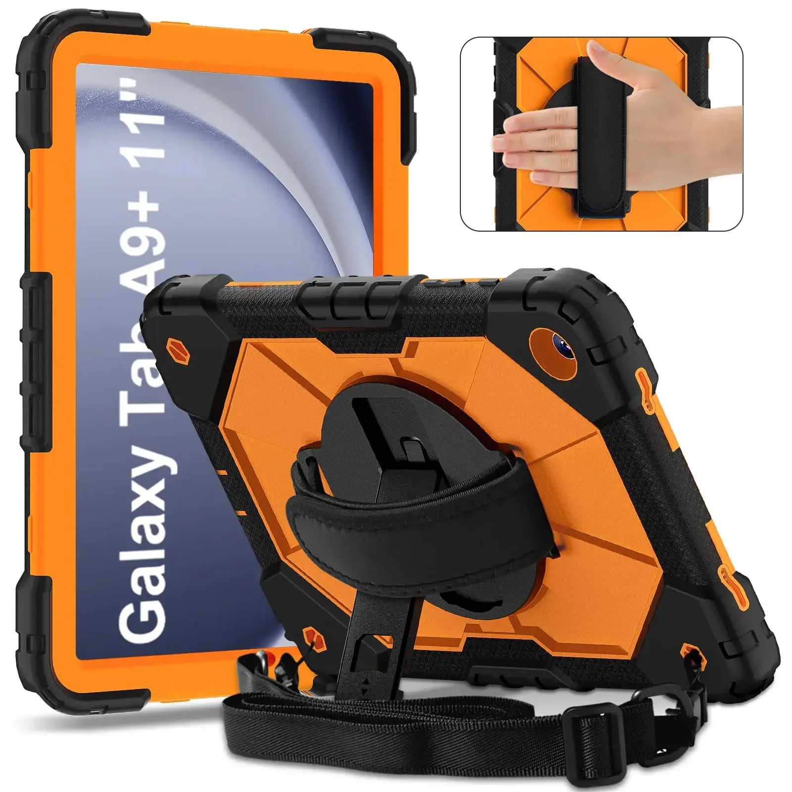 Shockproof Tablet Case with Rotating Hand Strap & Stand & Shoulder Strap, Tablet Protective Cover, Tablet Casing, Tablet Accessories Compatible with Samsung Tab A9 Plus