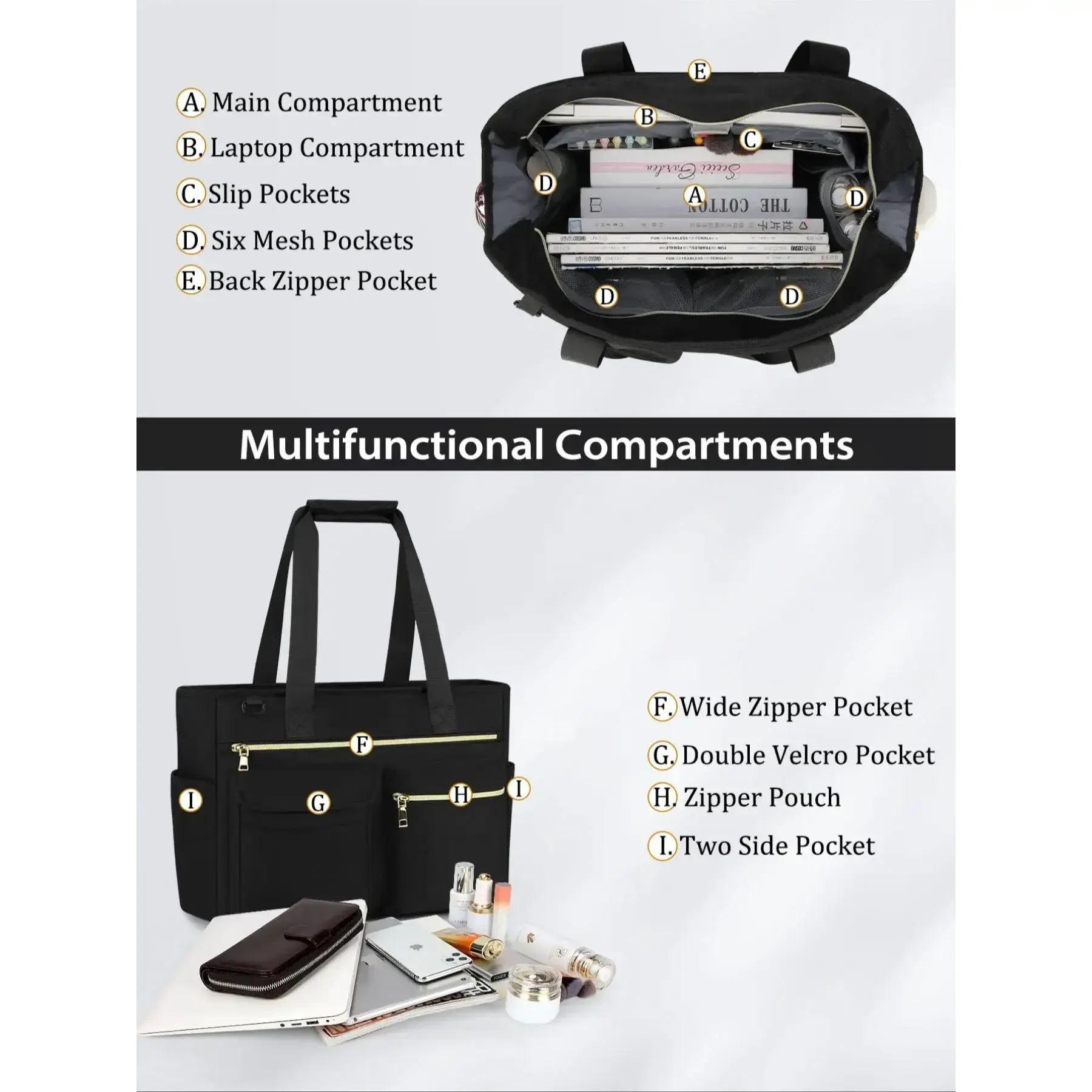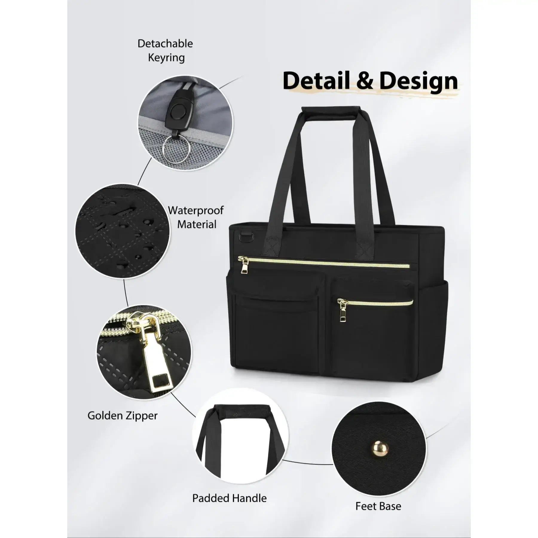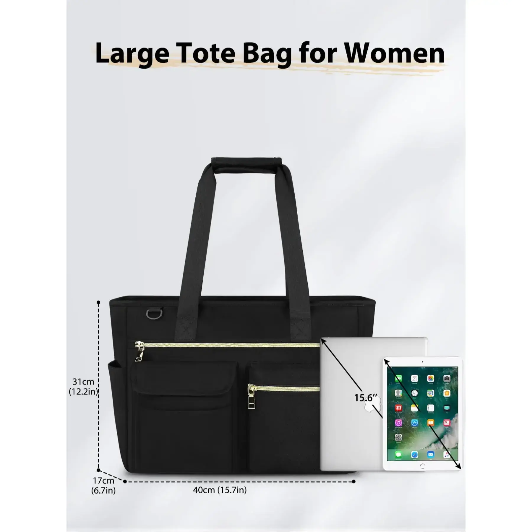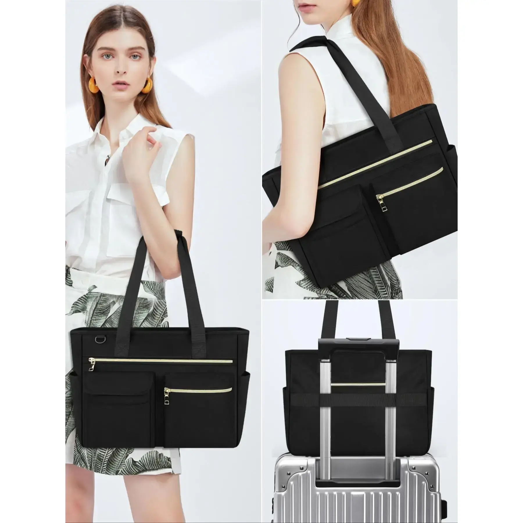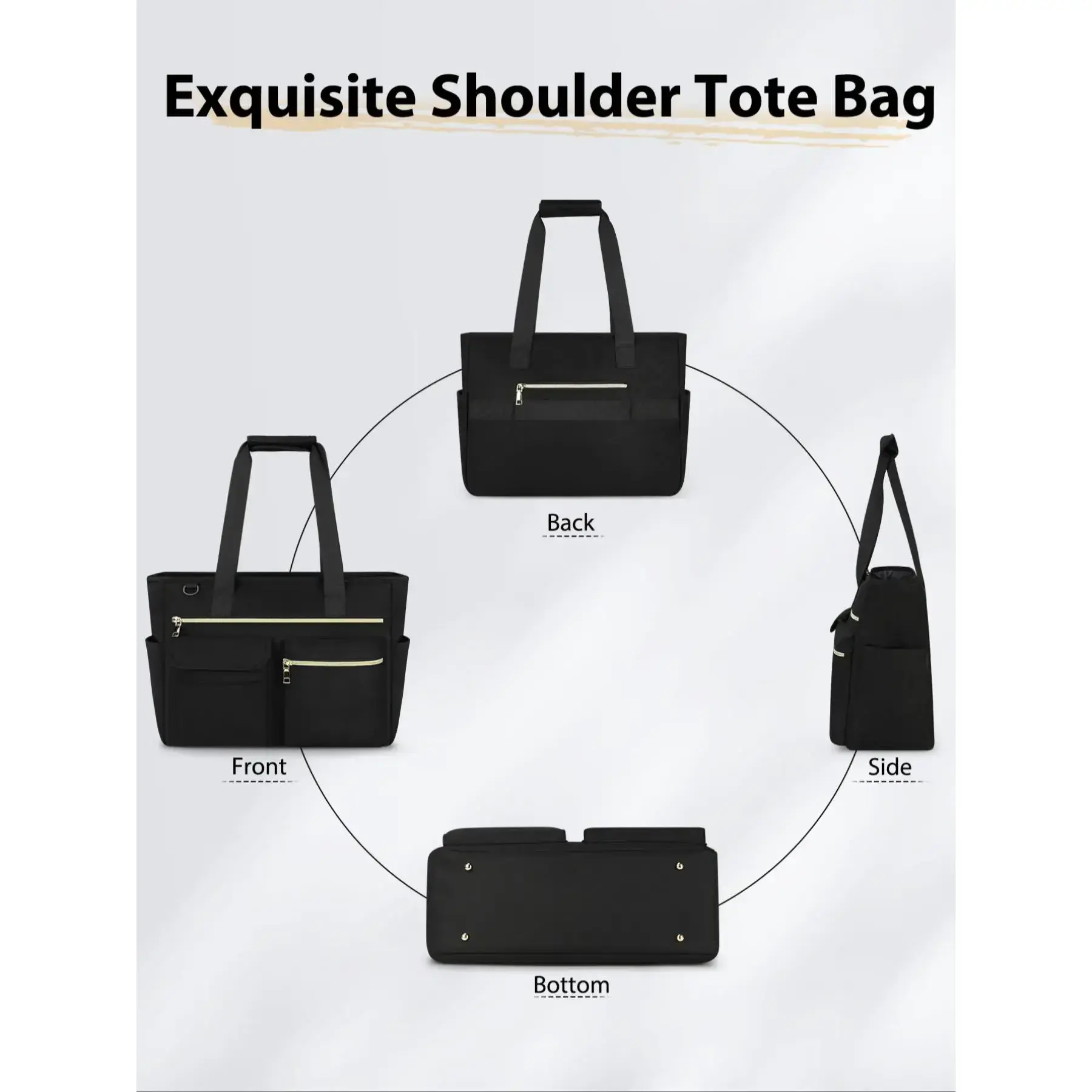 Women's Solid Color & Plaid Tote Bag, Large Travel Tote Bag with Compartments, Waterproof Work Shoulder Bag, Canvas Tote Bag for School Beach