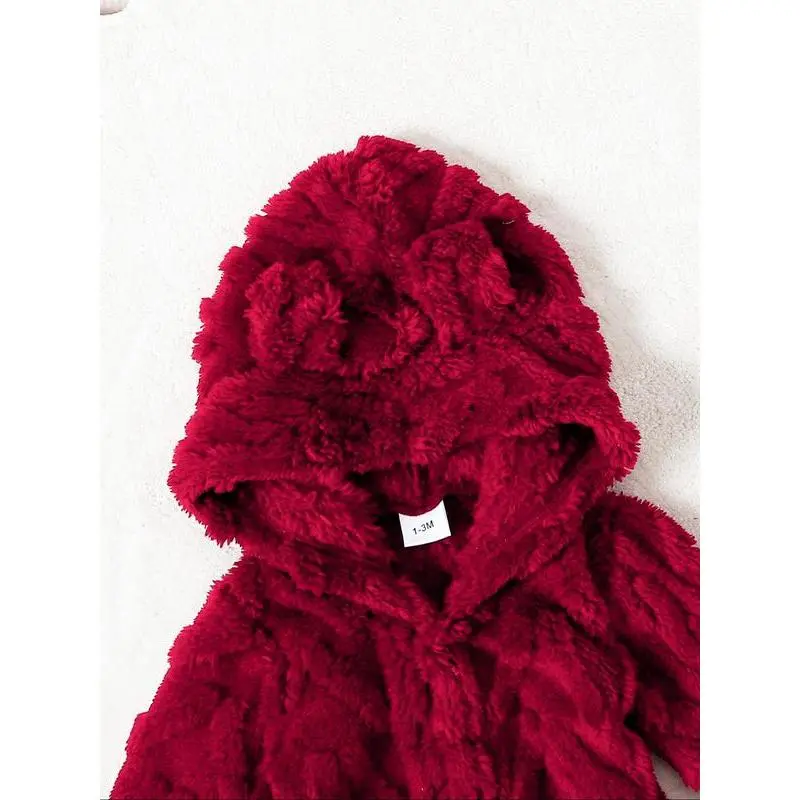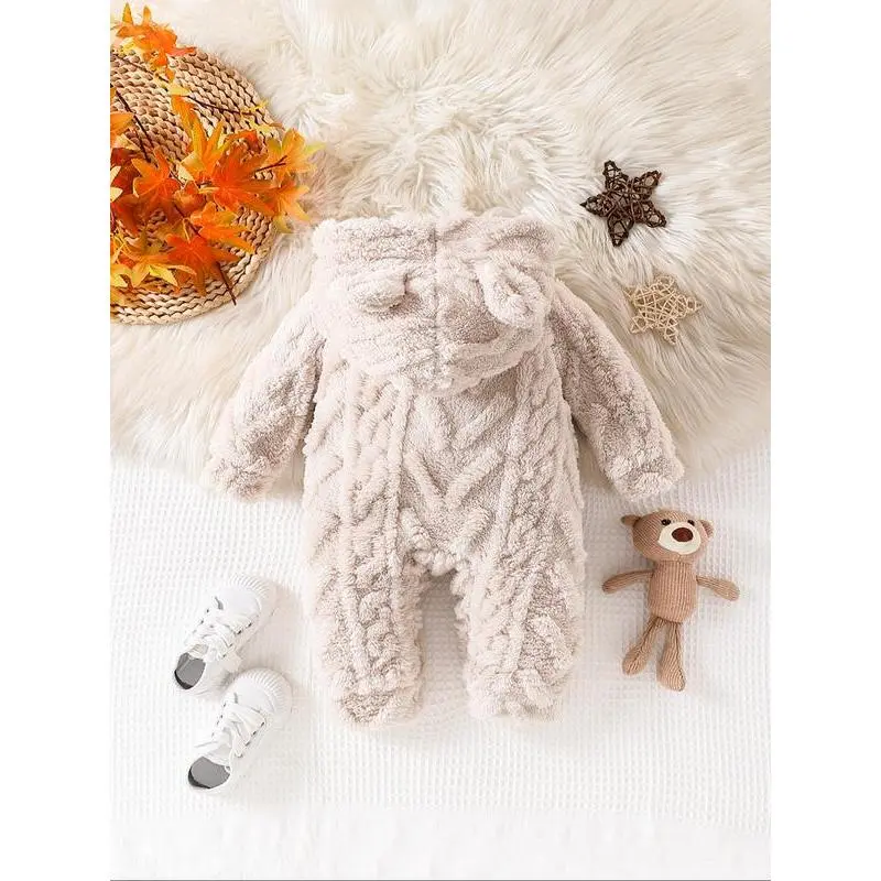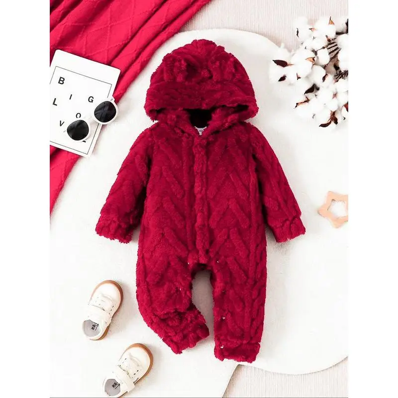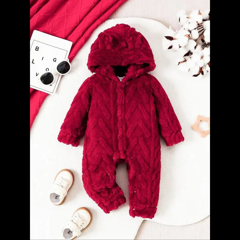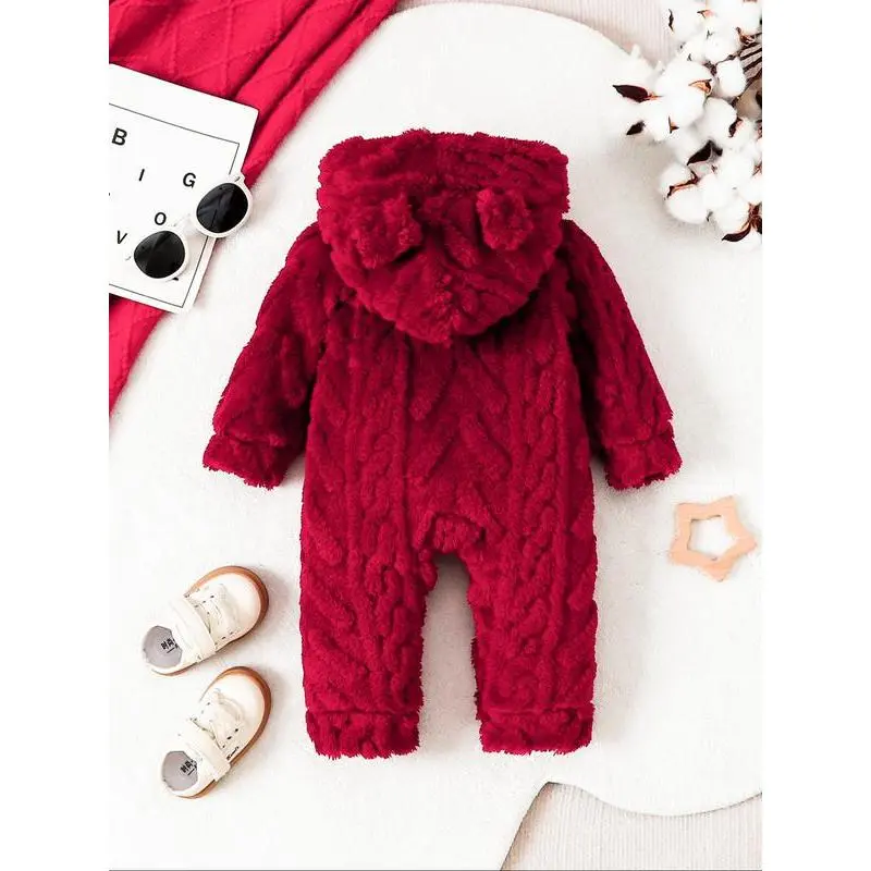 Girls' Solid Color Plush Hooded Jumpsuit, Warm Fall, Soft Fabric, Comfortable Fit, Ideal for Autumn Weather