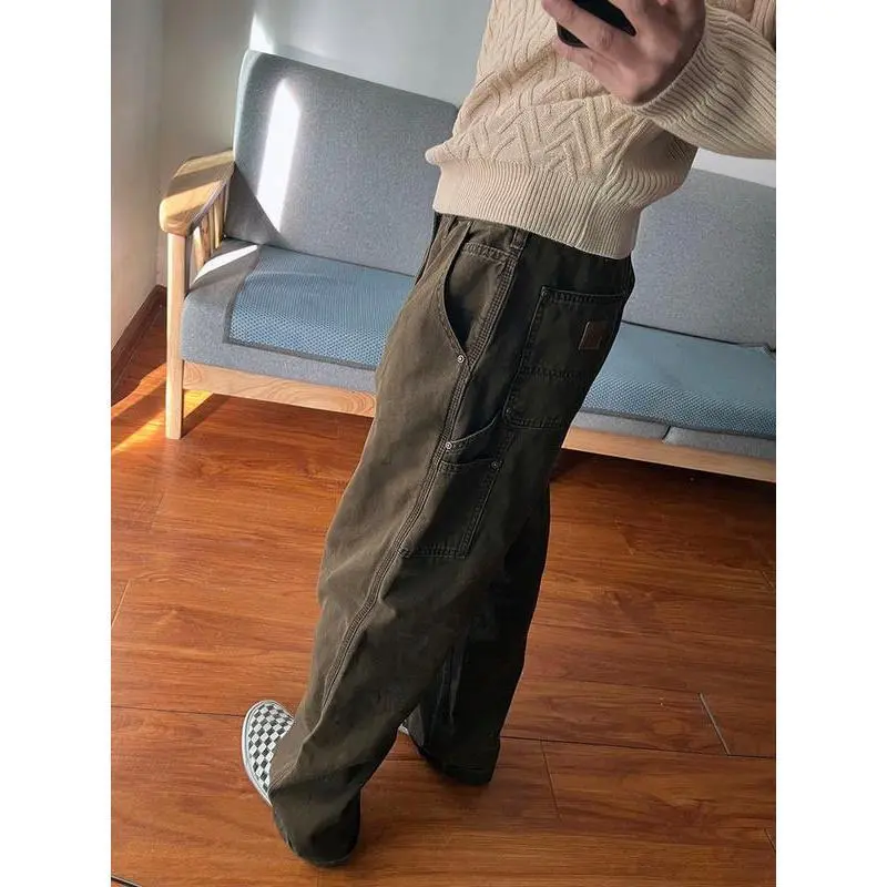 Loose Carpenter Trousersfashion Clothes Casual Man Menswear Plain Pants Pocket Basic Decoration Outdoor Overalls Straight pants men cargopantsmen work pants men Can be used with raincoatGift
