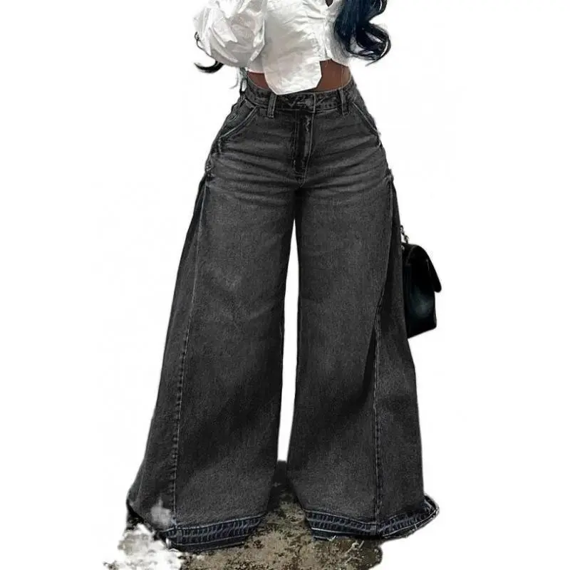 2025 Spring Retro Style Wide-Leg Denim Flared Pants with Fringes jeans levant cola 100 colombianosGift