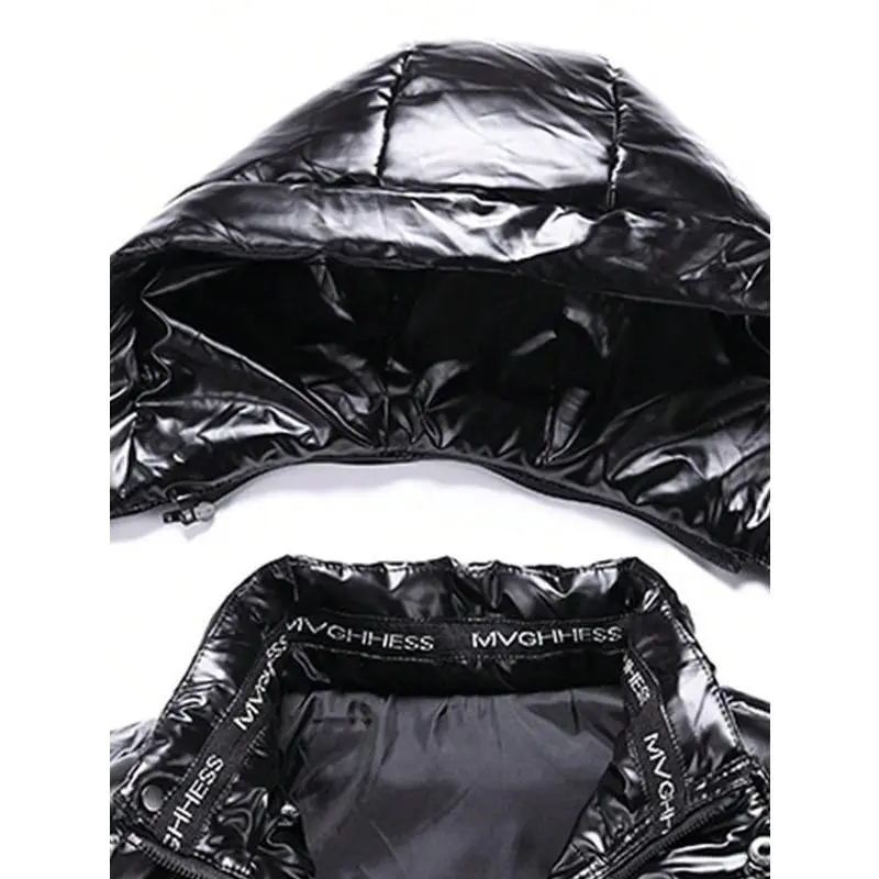 Wintry Faux Leather Hooded Puffer
