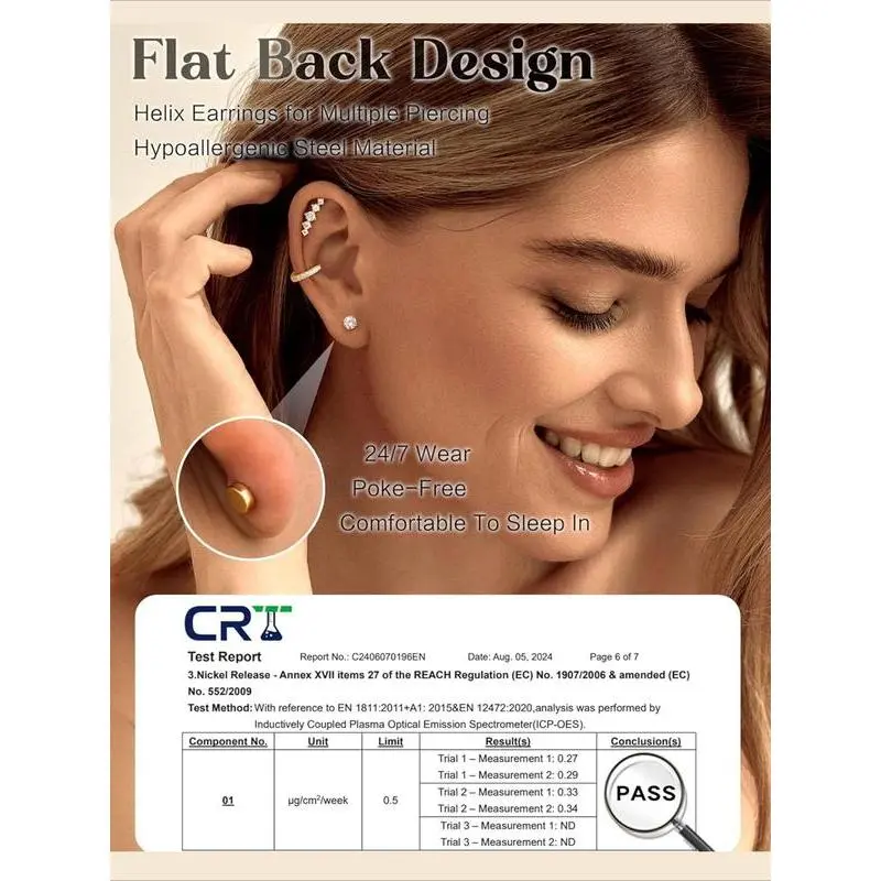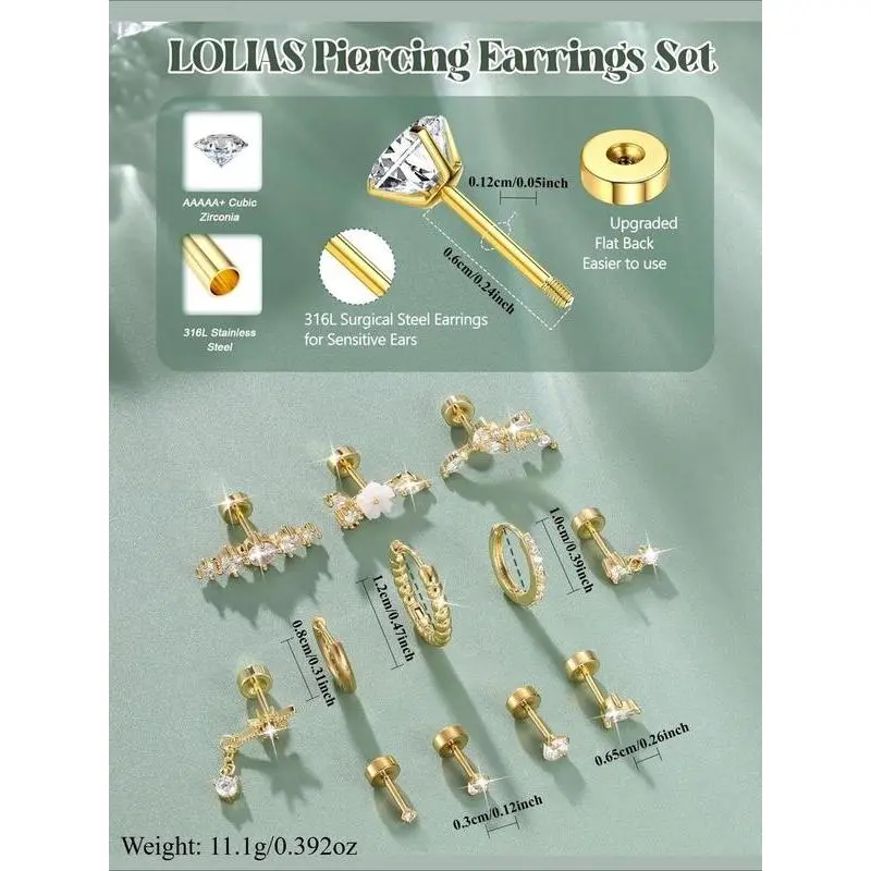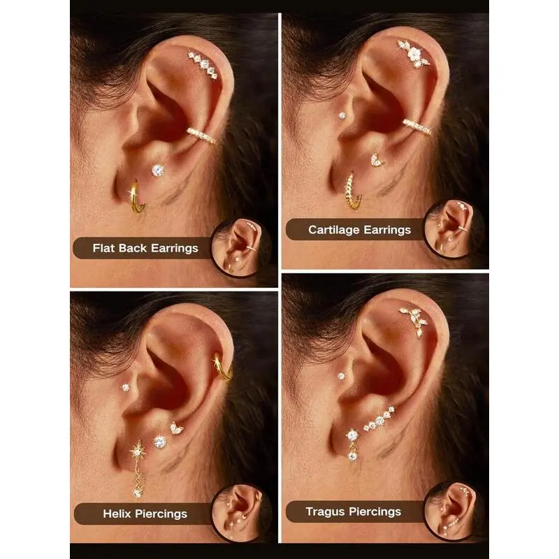 16 Gauge Cartilage Earrings for Women Flat Back-Hypoallergenic Stainless Steel Stud Hoop Cartilage Earring Set Daith Conch Tragus Helix Piercing Jewelry Single PC Earring Stack