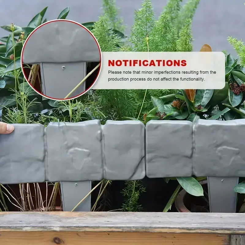【Durable Material】: Constructed from high-quality plastic, these garden borders resist fading and wear, ensuring long-lasting use in your outdoor spaces. 【Realistic Stone Finish】: Featuring a gray stone texture, these borders provide a natural look, enhancing the visual appeal of any garden or flowerbed. 【Versatile Size】: Each piece is designed to easily interlock, allowing for flexible configuration to fit various garden layouts and styles. 【Easy Installation】: Lightweight and manageable, these garden borders are simple to set up, making garden beautification a hassle-free project. 【Defined Boundaries】: These borders clearly outline garden areas, effectively distinguishing flowerbeds and improving overall organization in outdoor spaces.