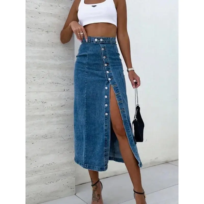 ??Button Fly Closure??: Features a practical button fly closure, ensuring easy wear and adding a classic touch to the skirt. ??Midi Length??: The midi length provides a sophisticated silhouette, making it suitable for various occasions and seasons. ??Elastic Fabric??: Made with elastic fabric that enhances fit and comfort, catering to freedom of movement throughout the day. ??Washable Material??: Crafted from water-wash material, facilitating easy care and maintenance while retaining its vibrant look. ??Seasonal Versatility??: Designed for all seasons, allowing you to incorporate it into your wardrobe year-round with ease.