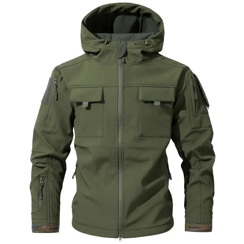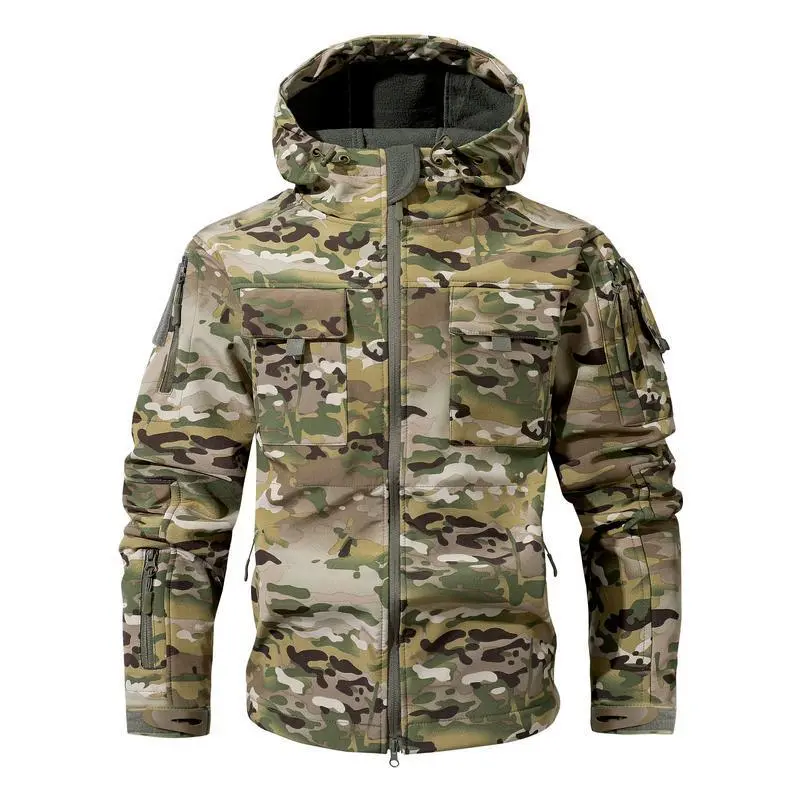 Men's Multi-Pocket Workwear Hooded Jacket, Fleece Waterproof Jacket, 9 Cl Menswear ose-Fitting Pockets Fleece Design. Menswear Coats Coats Tops Long Sleeve Operator Motocross Camo Camouflage Casual Navy Outdoorfun??gift??