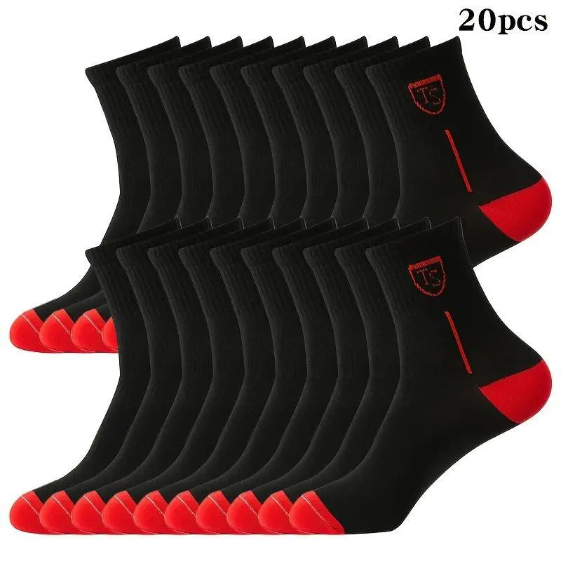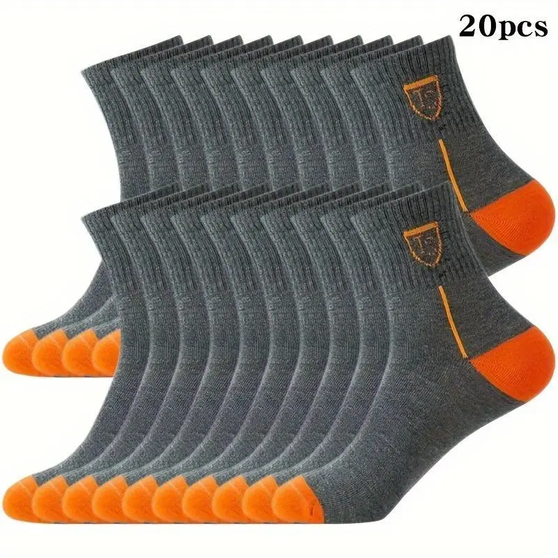 20 Pairs Of Men's Anti-odor Sweat Absorption Crew Socks, Comfy And Breathable Sport Socks For Outdoor Wearing