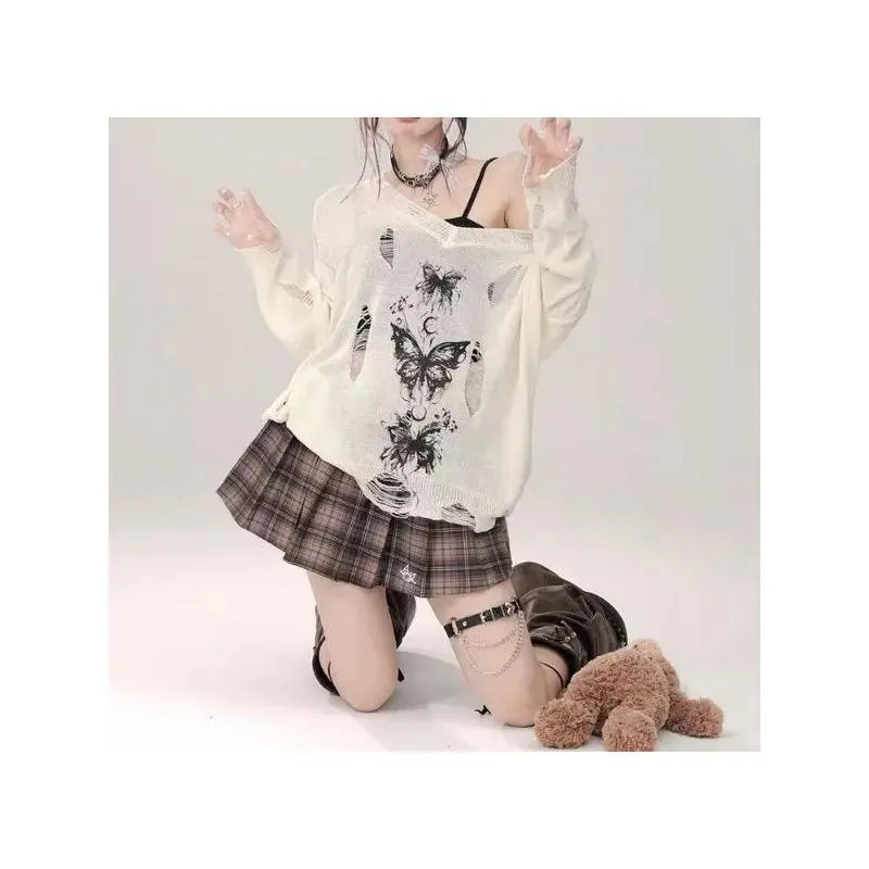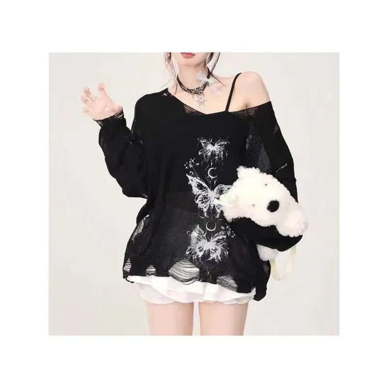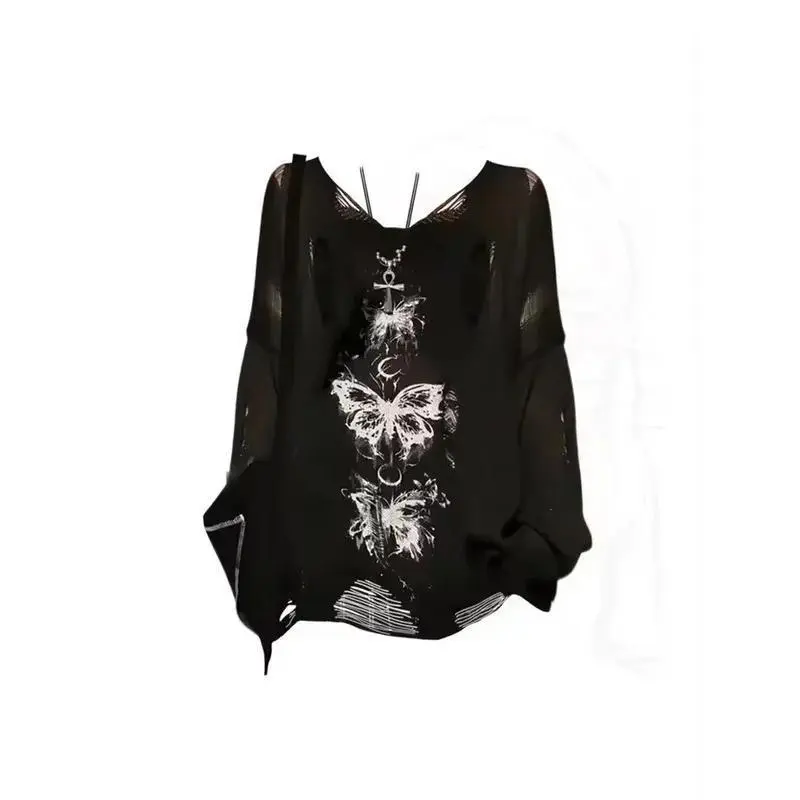 EmotionalStyleWomen'sStreetwearLongSleeveGrungeAestheticAkubiFairyStyleT-ShirtGothicStyleHotGirlLetterTop2000sAlternativeClothingWomen'sSummerWomenswearTshirtCrewneckCasual