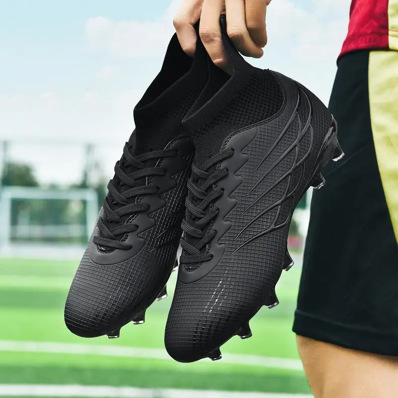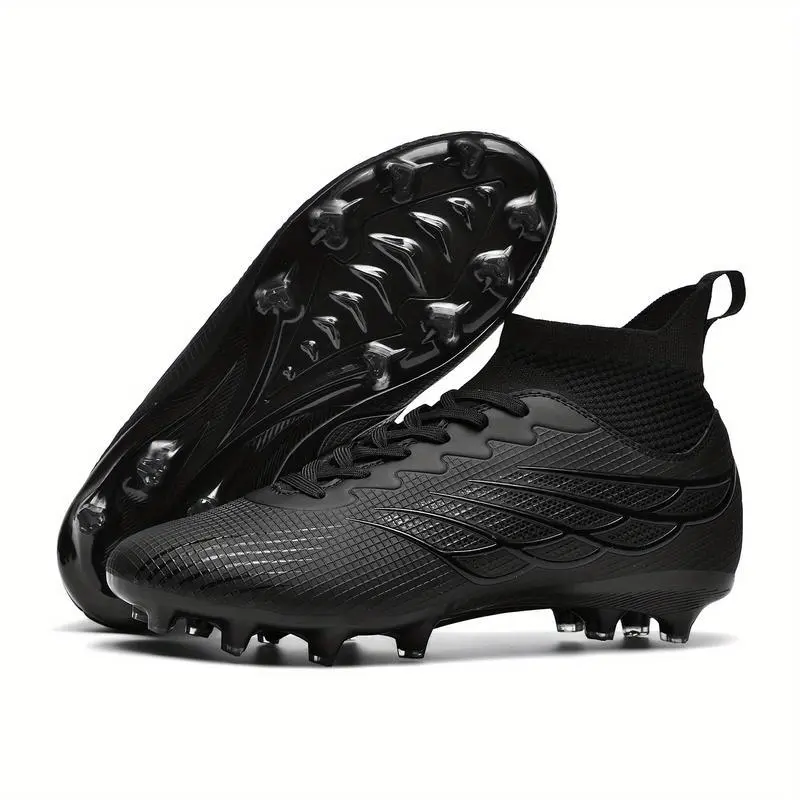 1PairMen'SProfessionalSoccerCleats,High-TopAGStudsFootballBoots,BreathableFauxUpper,Non-SlipTPUSole,FabricLining,StripedSportsStyle,All-SeasonOutdoorTrainingShoes,ClassicBlack