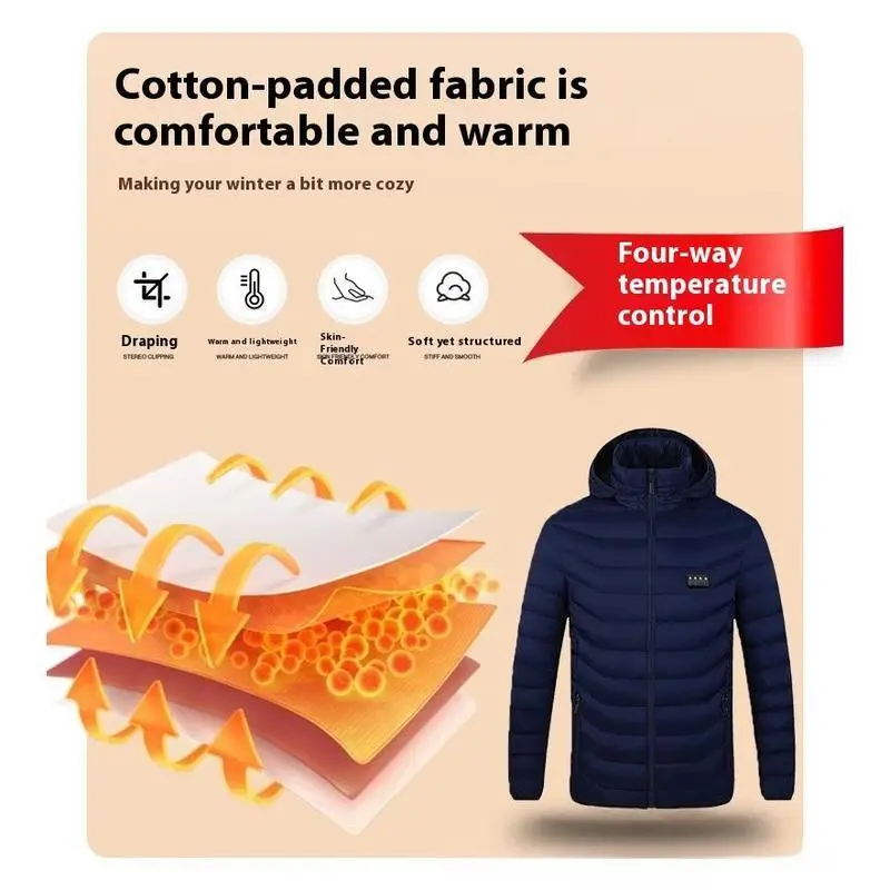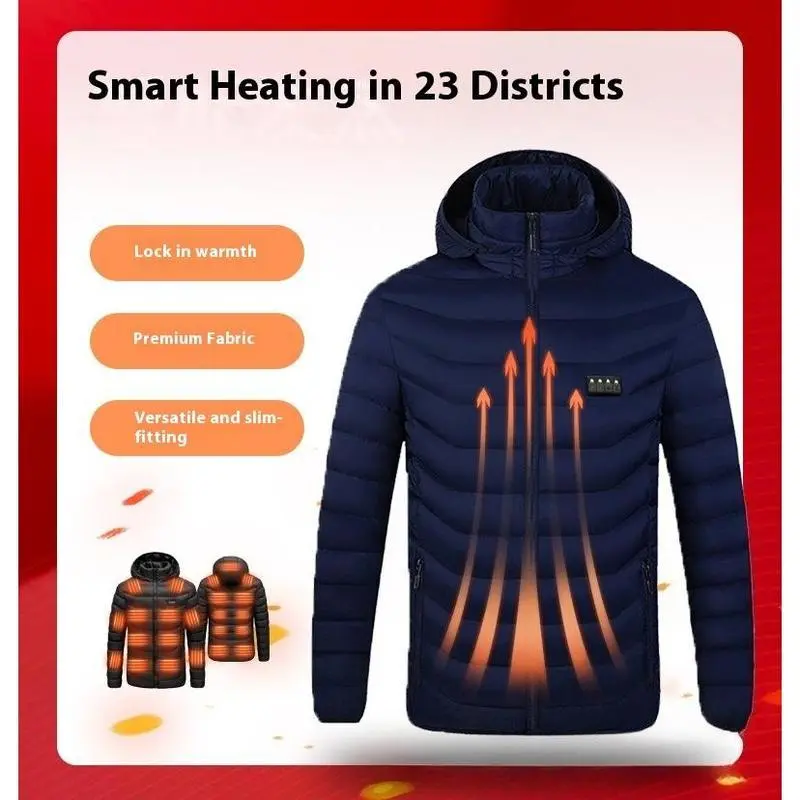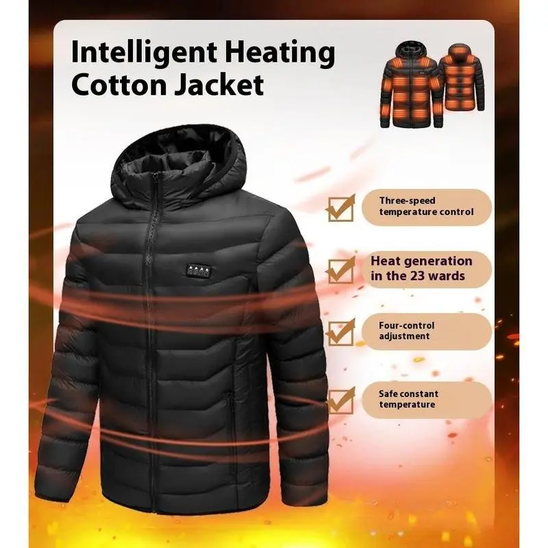 Heated jacket, men's USB heated jacket, lightweight full-zip smart electric heated jacket, winter warm jacket, smart heated cotton jacket, USB rechargeable heated cotton jacket, four-control 23-zone smart heated cotton jacket (power bank not included)