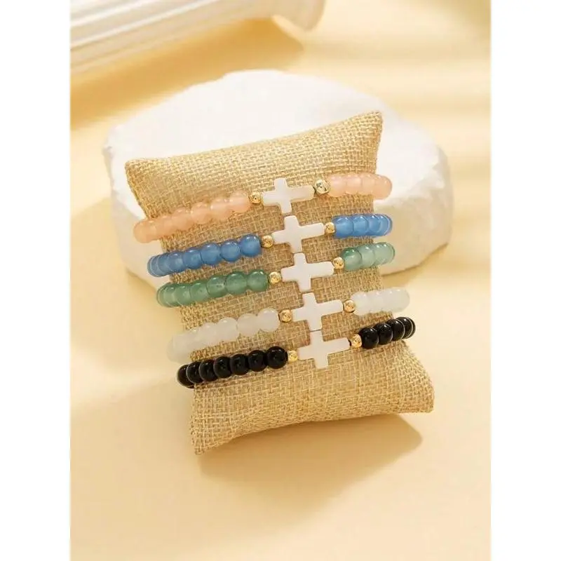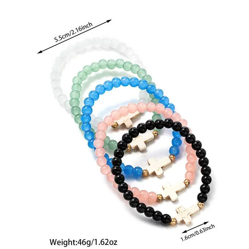 【Multi-color options】: Choose from a variety of colors, ensuring that your bracelet collection can match any outfit and occasion. 【Unique material blend】: Composed of copper alloy, glass beads, and seashells, providing an interesting mix of textures and appearances. 【Charming crosses】: Each bracelet features a cross pendant, adding a gentle religious or symbolic element to your everyday accessories. 【5-piece set】: Includes five individual bracelets, allowing for mixing and matching or layering for a more impactful look. 【All-season wear】: Designed for wear throughout the year, these bracelets complement your style regardless of the season.