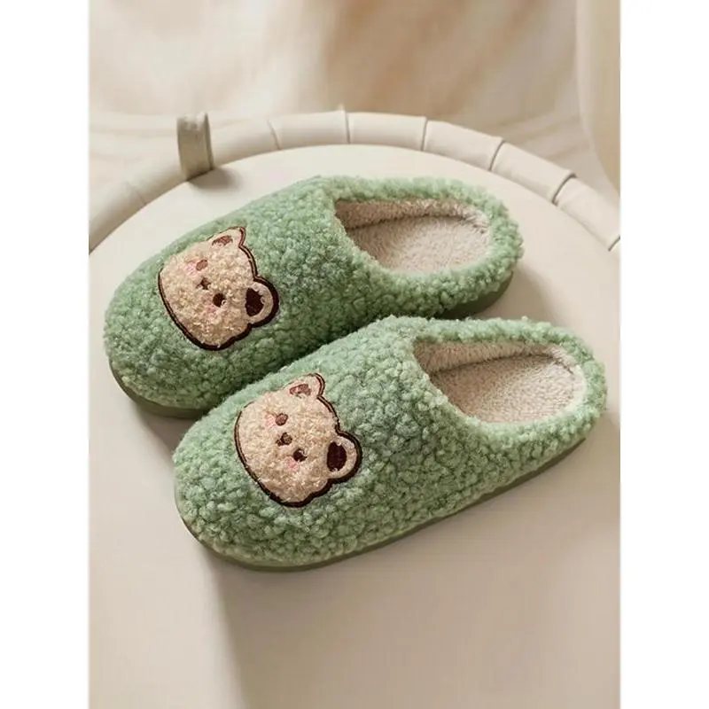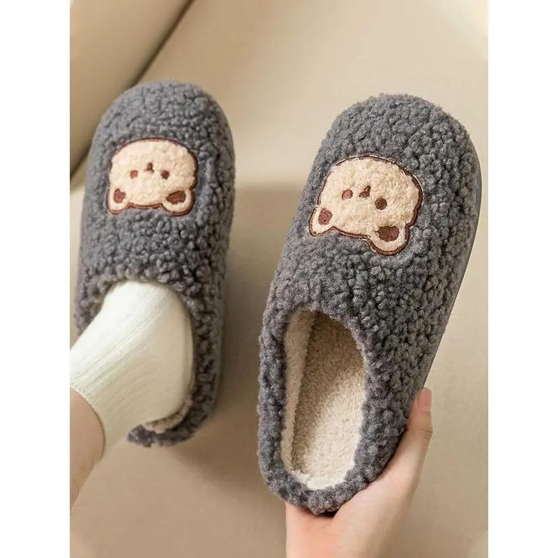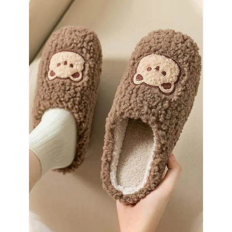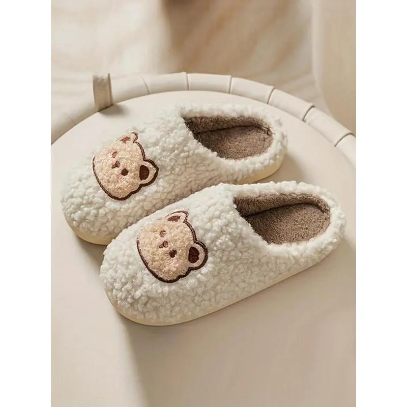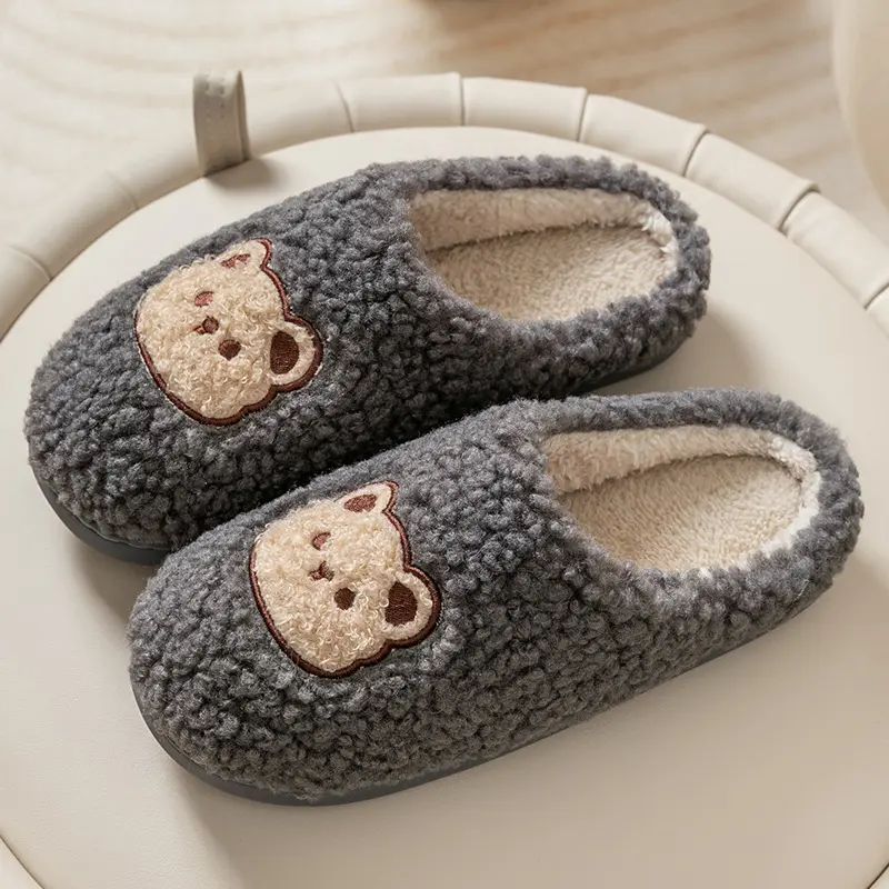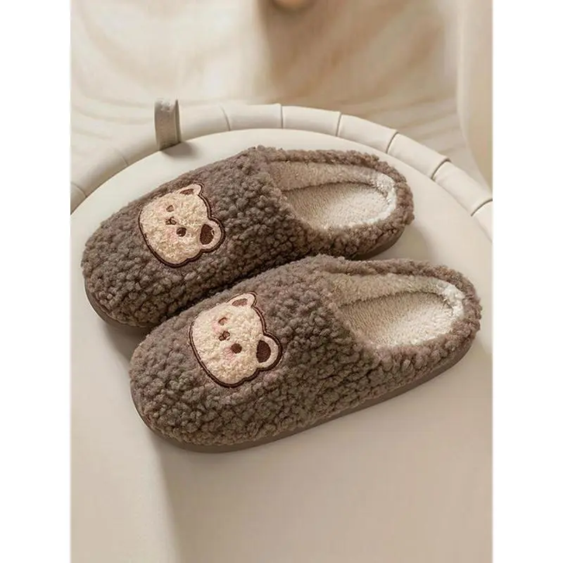 Winter Indoor Cute Bear Non-Slip Warm Plush Slippers, Comfortable Couple Home Shoes, Cozy House Footwear for Cold Weather