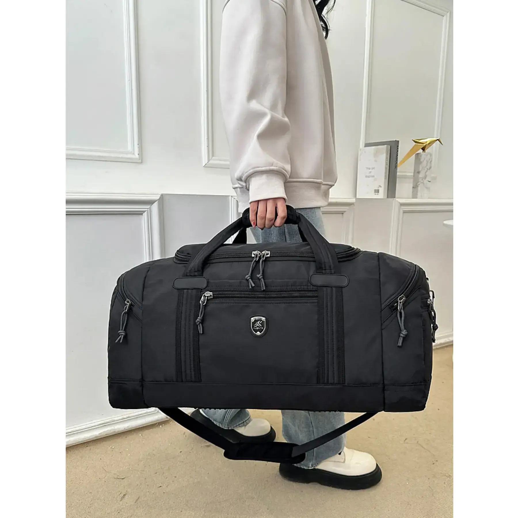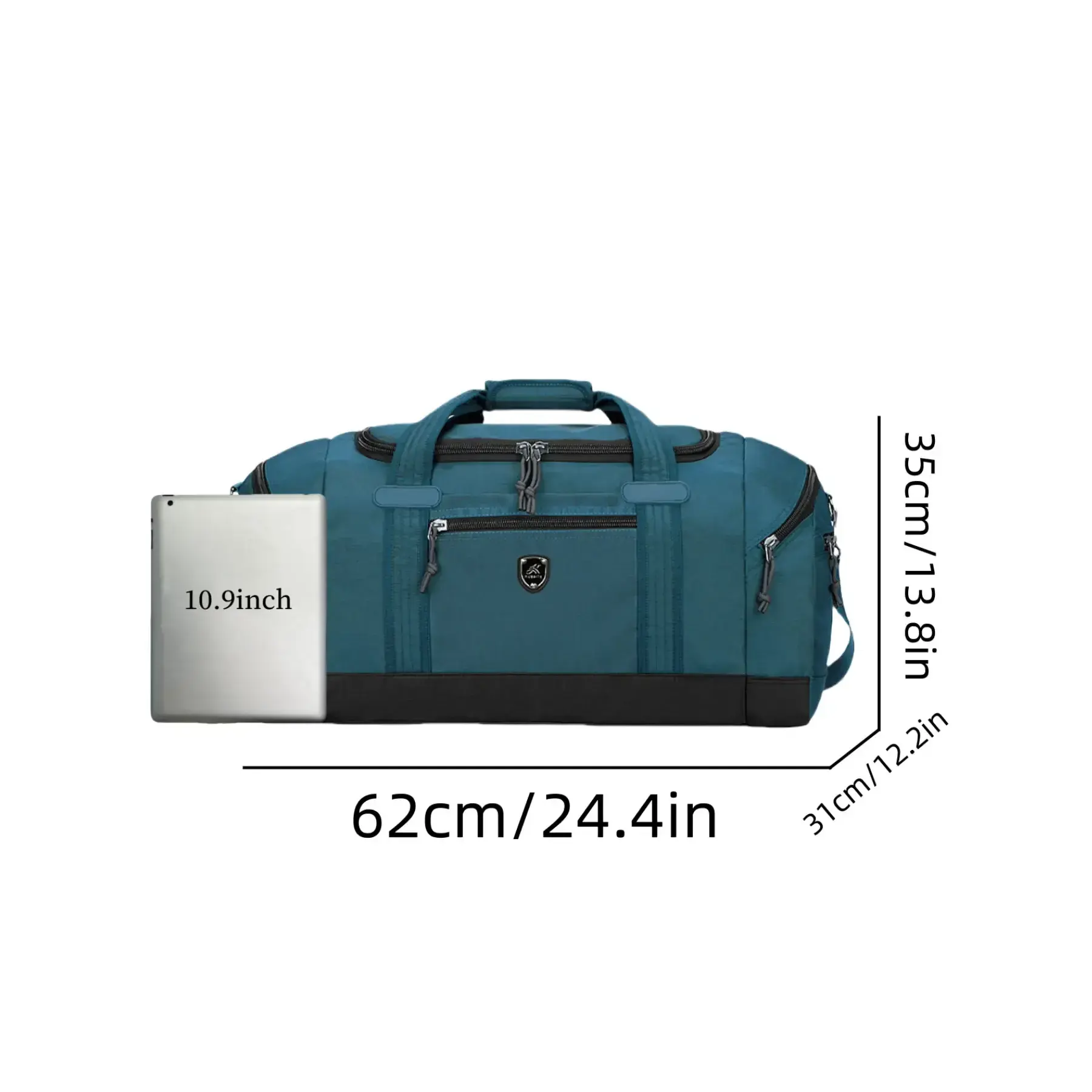 【Spacious Capacity】: Constructed to hold a significant amount of belongings, accommodating all your travel or gym essentials with ease. 【All-Season Use】: Designed to be functional in various weather conditions, making it a reliable companion throughout the year. 【Multiple Carry Options】: Equipped with shoulder straps and handles, offering various carrying styles for convenience during travel. 【Durable Fabric】: Crafted from quality bag fabric, ensuring long-lasting use and resistance to wear and tear during travels. 【Weekender Bag Type】: Tailored specifically as a duffel/weekender bag, ideal for short trips, fitness training, or daily use.