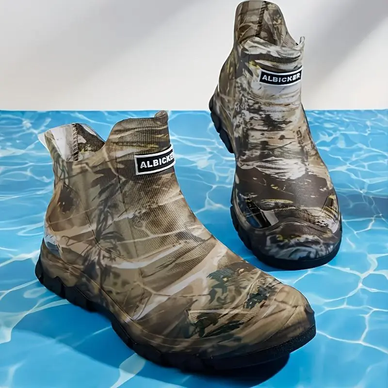 Men'sCamoWaterproofRainBoots-Durable,Slip-ResistantShortAnkleBootsforOutdoorWork,Fishing,andGardeningwithReinforcedRubberSoleandPullTabDesign,GardeningFootwear|CamouflageFootwear|SlipresistantFootwear