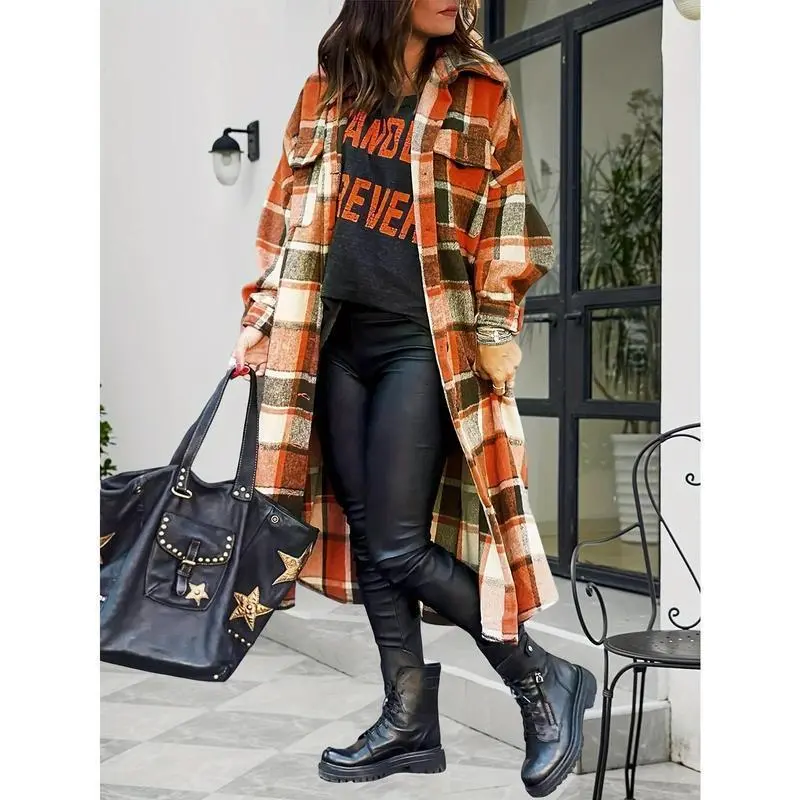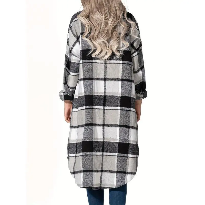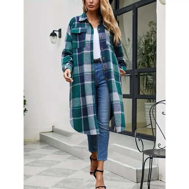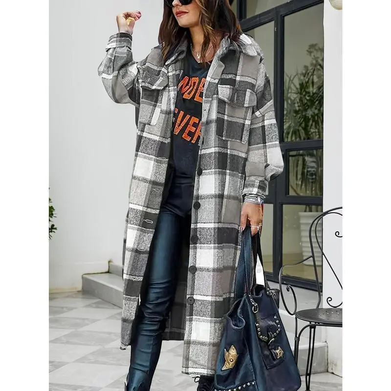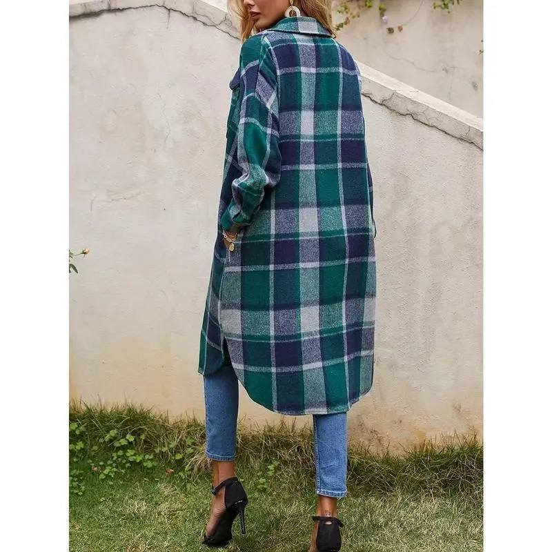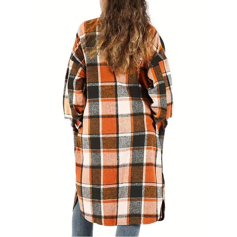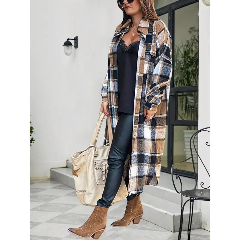 WomensPlaidLongTrenchCoats-Casual,ButtonFront,PuffSleeveShacketsforDailyWear