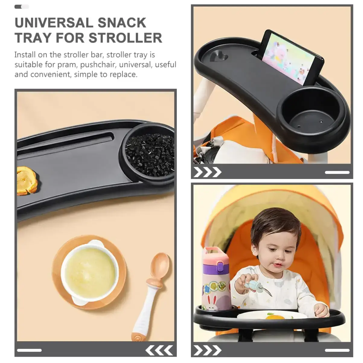 【Universal Compatibility】: This tray is designed to fit various strollers equipped with cup holders, ensuring seamless integration with your setup. 【Detachable Feature】: Easily detachable for convenience, allowing quick removal and hassle-free cleaning during outings with your child. 【Child-Friendly Design】: The tray features rounded edges and a practical layout, making mealtime safe and enjoyable for your little one. 【Easy Installation】: Quickly install onto your stroller's pole without extensive tools, providing a simple solution for on-the-go parents. 【Functional Accessory】: An essential accessory for strollers that enhances feeding experiences, keeping snacks and drinks within easy reach.