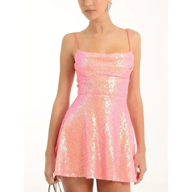 Women Shiny Sequins Dress Summer Backless A-Line Mini Party Dress for Cocktail Beach Streetwear Shiny sequins, ruched bust, adjustable straps, bandage and backless, summer dresses for women, beach dresses for women, mini length and A-line design to make the legs more slender and make you look slimmer. Suitable for summer, wedding, club, casual, birthday party, vacation, beach, vacation, work, cocktail party, night out, daily life, dating. S Length: 67 Bust: 72-90 Waist: 66-72 M Length: 68 Bust: 76-94 Waist: 70-76 L Length: 69.5 Bust: 81-99 Waist: 75-81 XL Length: 71 Bust: 86-104 Waist: 80-86 S Length: 26.38 Bust: 28.35-35.43 Waist: 25.98-28.35 M Length: 26.77 Bust: 29.92-37.01 Waist: 27.56-29.92 L Length: 27.36 Bust: 31.89-38.98 Waist: 29.53-31.89 XL Length: 27.95 Bust: 33.86-40.94 Waist: 31.5-33.86 Condition: 100% Brand New Material: 95% Polyester 5% Spandex Size: S, M, L, XL Color: White, Gold, Black, Rose Red, Pink Orange 1* Women Dress There may be 1-2 cm deviation in different sizes, locations and stretch of fabrics. Size chart is for reference only; there may be a little difference with what you get. Color may be lighter or darker due to the different PC display. If the product has any quality problems, please feel free to contact us, we will help you solve the problem as quickly as possible.