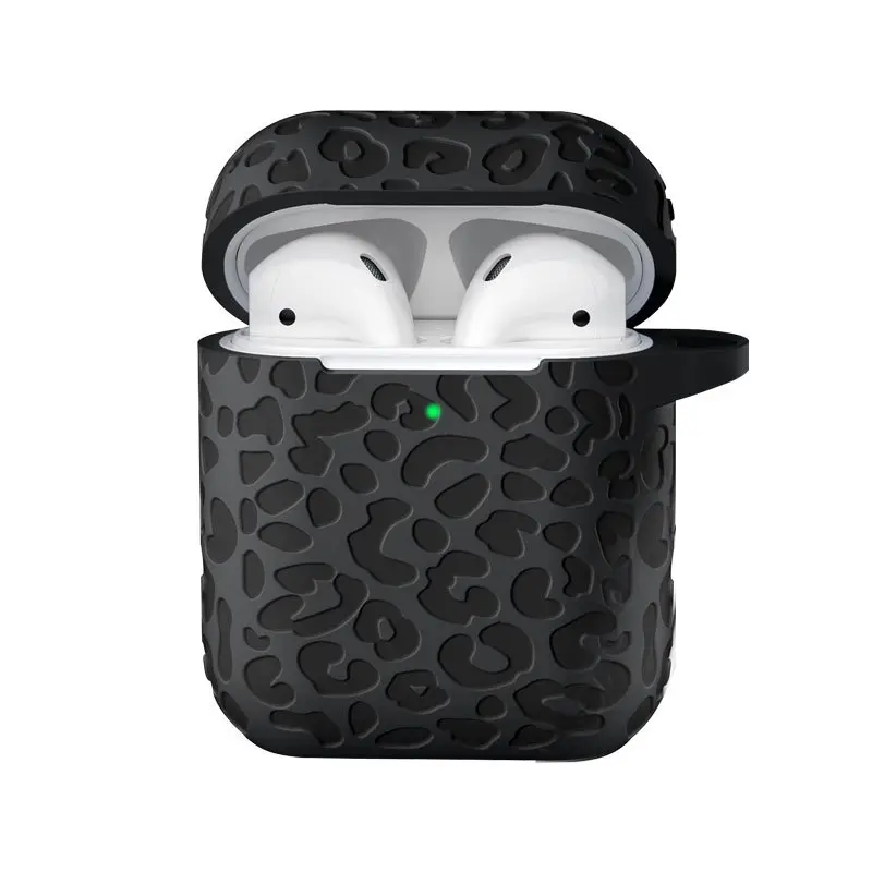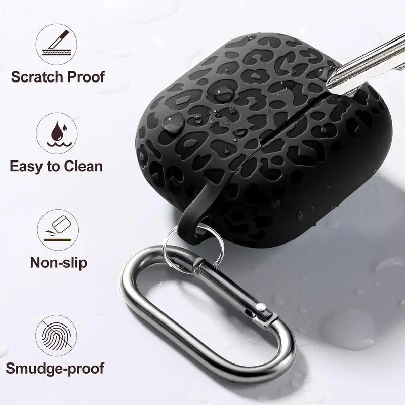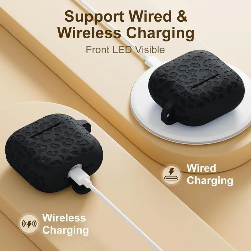Leopard Engraved for AirPods 4 Case Cover 2024,Soft Silicone Protective Case Compatible with AirPods 4th Generation Case for Women,Cute AirPod 4 Case Accessories with Keychain (Black)