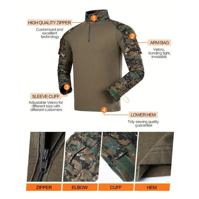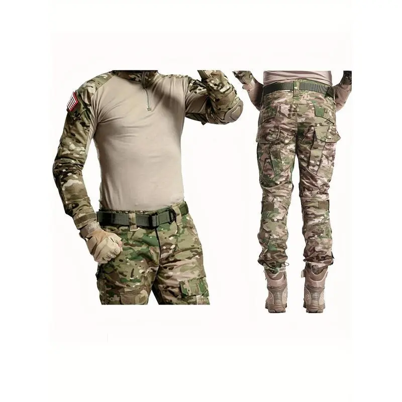 2025newElgNewMen'sCombatTacticalUniformsLongSleeveFittingAmryMilitrayUniformsforMenCombatShirtandPantsCamouflageClothingHuntingHikingPaintballGearFathersdaygiftArmyCostume