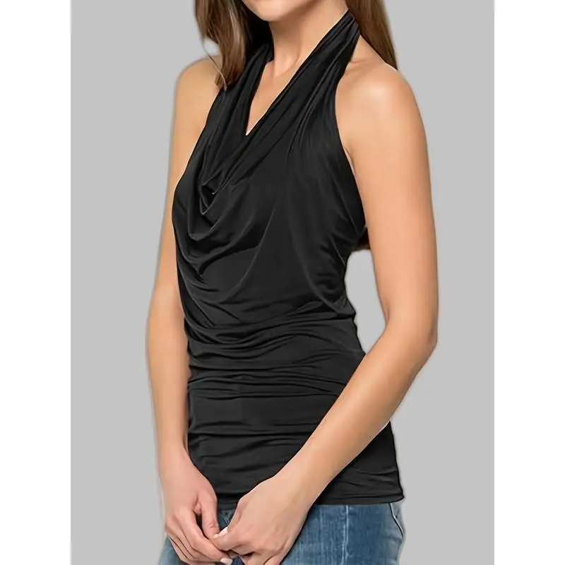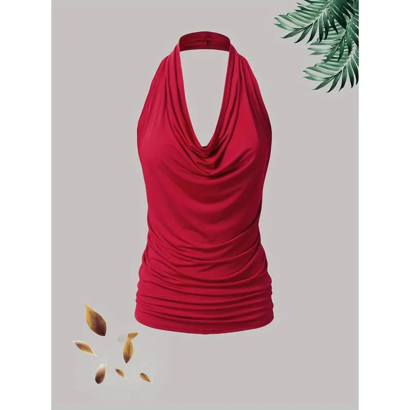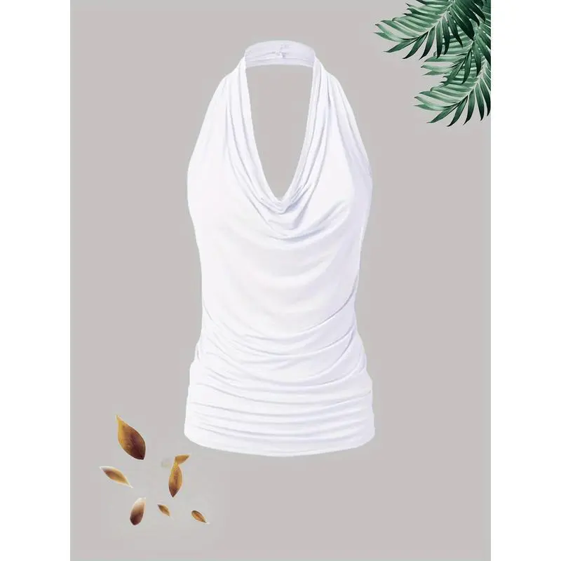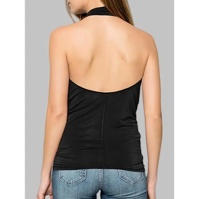 QINSEN Women's Sexy Open Back Sleeveless Crop Tank High Neck Slim Fit Cropped Tee Shirt Y2k Tops Comfort Fabric
