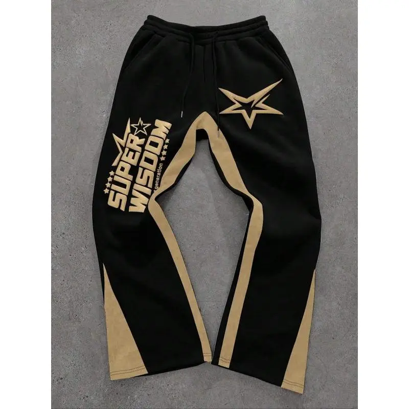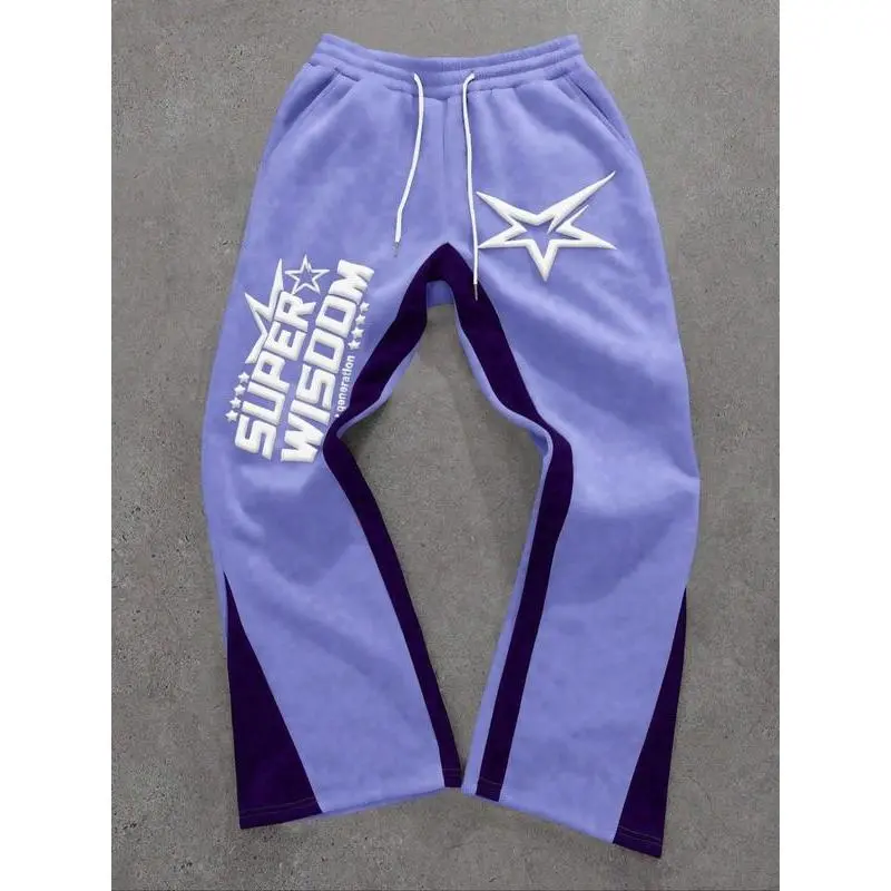 ??Unique Prints??: Features colorful letter and star prints, making these sports pants visually distinctive and trendy. ??Relaxed Fit??: The loose-fitting silhouette allows for easy movement, ensuring functionality for both sports and daily wear. ??Seasonal Wear??: Suitable for all seasons, these pants provide versatility in varied weather conditions and occasions. ??Drawstring Waist??: Equipped with an adjustable drawstring at the waist for a customizable fit based on your comfort preferences. ??Durable Fabric??: Crafted from moderate thickness fabric, ensuring a balance of durability and breathability for everyday use.
