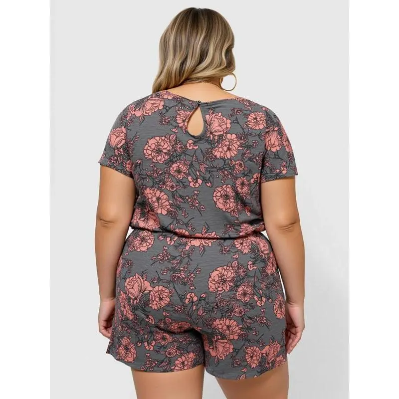 ??Plus Size?? All Over Print Pocket Short Sleeve Romper, Casual Comfy Romper for Daily Wear, Women's Plus Clothing for Summer