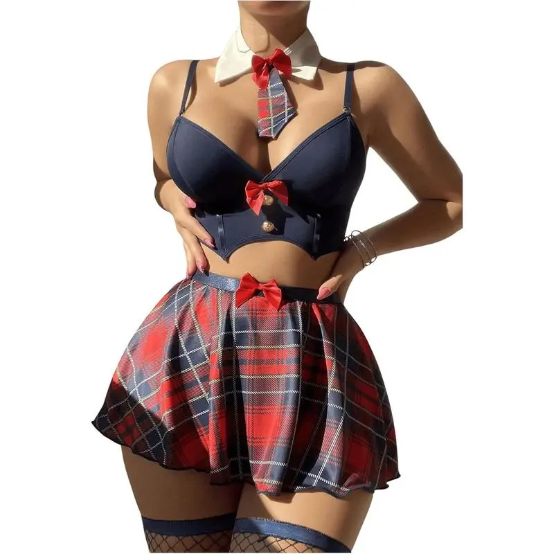 95% Polyester,90% Polyamide,10% Elastane,5% Elastane Care instructions Hand Wash Only Feature: 6 pieces, uniform costume, plaid, bow, asymmetrical hem, sleeveless, spaghetti strap, bra and panty sets, high rise, mini length, a line skirt, fishnet stockings Fabrics: Soft and skin-friendly material offers some stretch for a comfortable wearing feeling Occasion: The uniform plaid lingerie sets are perfect for spring, fall, autumn, christmas, valentine's day, anniversary, honeymoon, shower party, bridesmaid gift for wedding night and so on Care Instructions: Hand wash or professional dry clean Size Chart:??Product Measurement?? S:Length:8.7IN,Waist Size:25.2-38.6IN,Length:10.4IN,Waist Size:24.4-33.9IN,Length:8.5IN,Underbust:24.8-37.0IN M:Length:9.1IN,Waist Size:26.8-40.2IN,Length:10.8IN,Waist Size:26.0-35.4IN,Length:8.9IN,Underbust:26.4-38.6IN L:Length:9.4IN,Waist Size:28.3-41.7IN,Length:11.2IN,Waist Size:27.6-37.0IN,Length:9.3IN,Underbust:28.0-40.2IN XL:Length:9.8IN,Waist Size:29.9-43.3IN,Length:11.6IN,Waist Size:29.1-38.6IN,Length:9.6IN,Underbust:29.5-41.7IN
