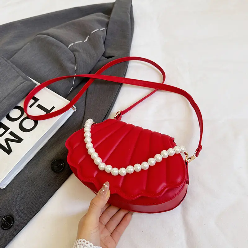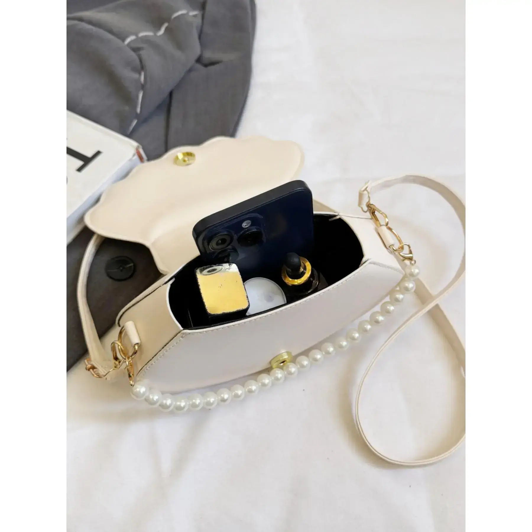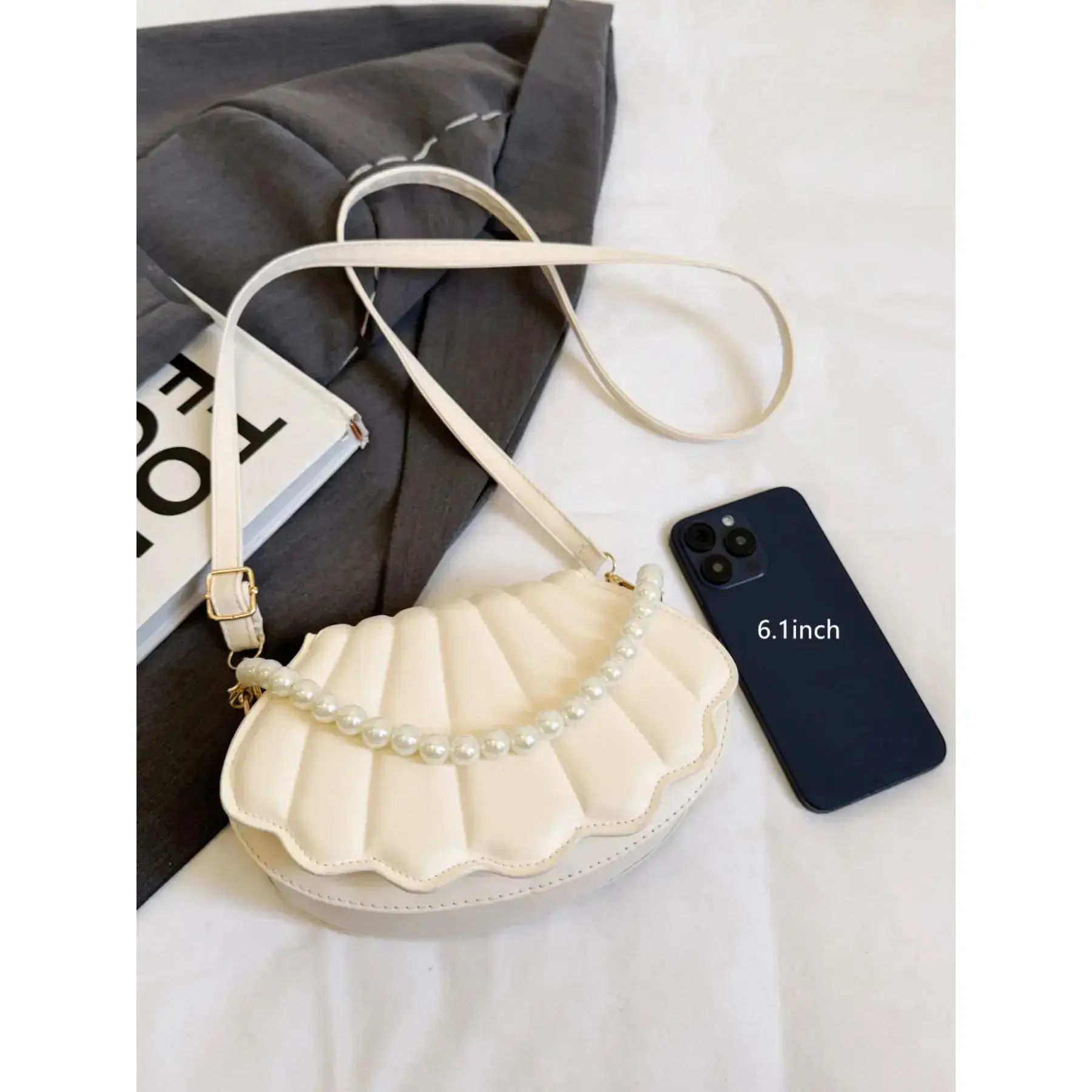 Women's Elegant Shell Shaped Bag, Fashionable Pearl Decorated Crossbody Bag for Daily Used, Casual Trendy Versatile High-quality Daily Commuting Bag, Handbag Shoulder Purse