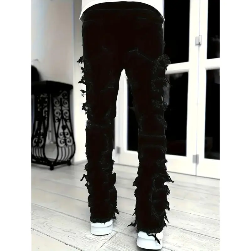 Women'sCreativeTasselDecoratedStraightJeans,CasualStretchStreetStyleHipHopSkateRapJeansForMenAndWomen,SuitableForAllSeasons