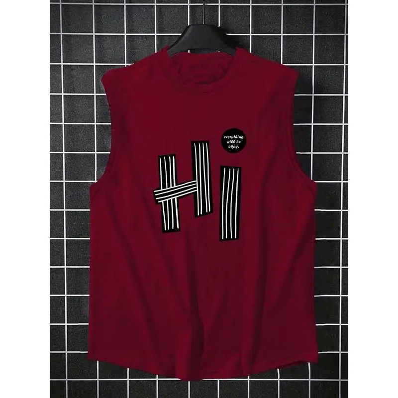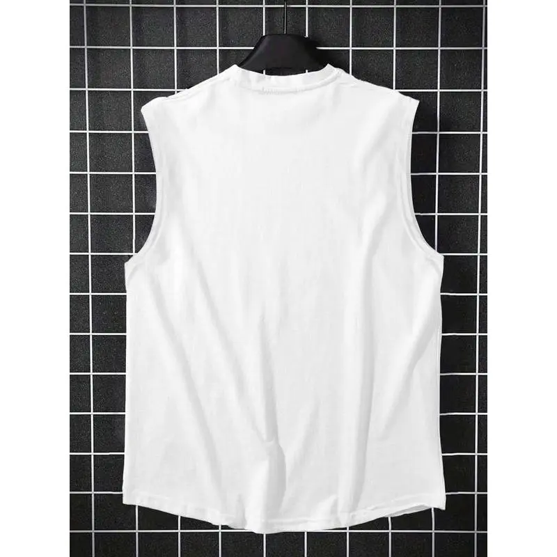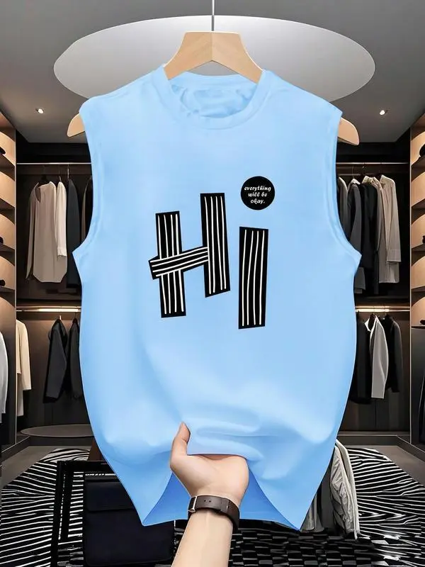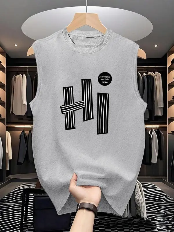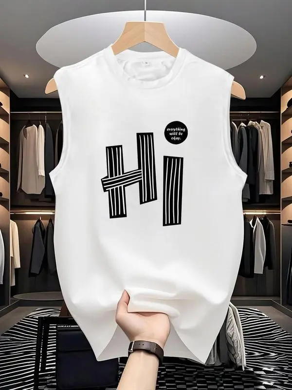 Men's Cartoon Letter Print Round Neck Tank Top, Loose Casual Fashion Comfy Sleeveless Vest for Daily Wear, Men's Clothes for All Seasons, Socks