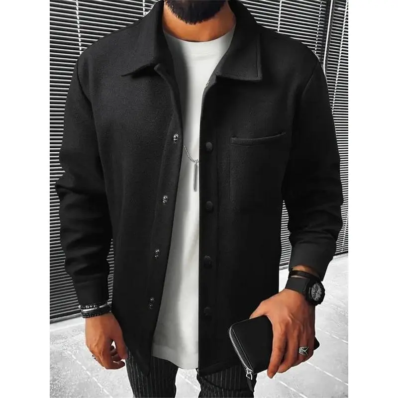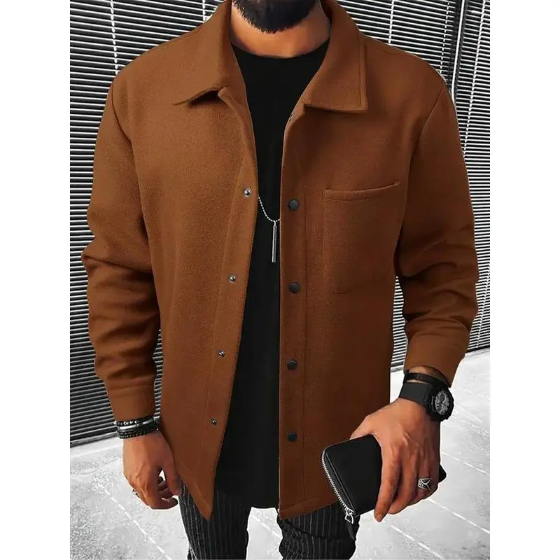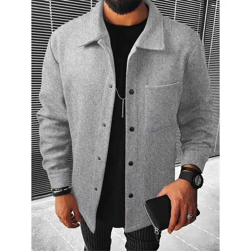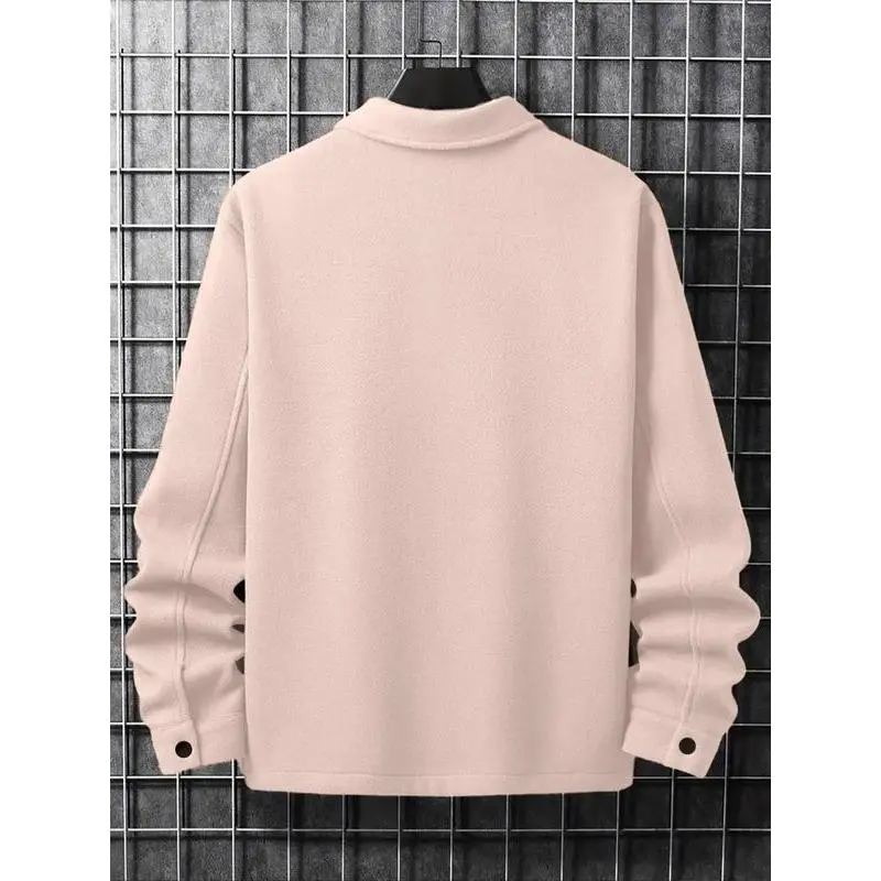 【Plus Size】 Solid Color Button Front Pocket Jacket, Regular Fit Casual Long Sleeve Stand Collar Outerwear for Spring & Fall, Men's Clothes for Daily Wear, Coats, Menswear