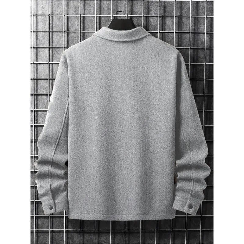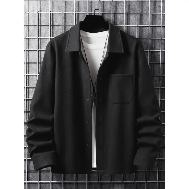 【Plus Size】 Solid Color Button Front Pocket Jacket, Regular Fit Casual Long Sleeve Stand Collar Outerwear for Spring & Fall, Men's Clothes for Daily Wear, Coats, MenswearGift