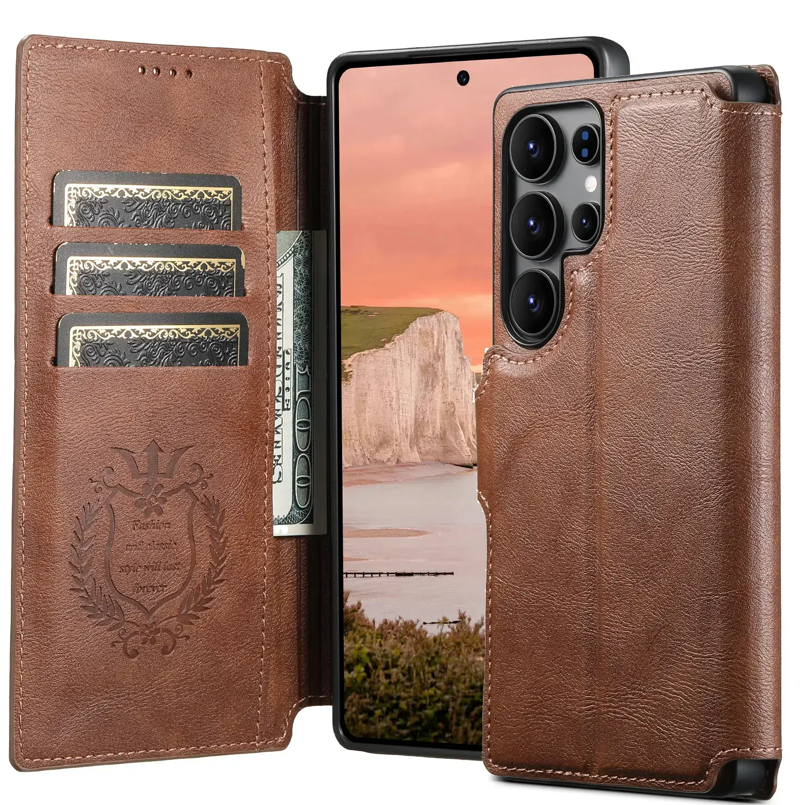 SUTENI Faux Leather Wireless Charging Card Holder Stand Wallet Magnetic Flip Cover Phone Case For Samsung Galaxy S26 Ultra S25 S24 S23 S22 Wallet For Men
