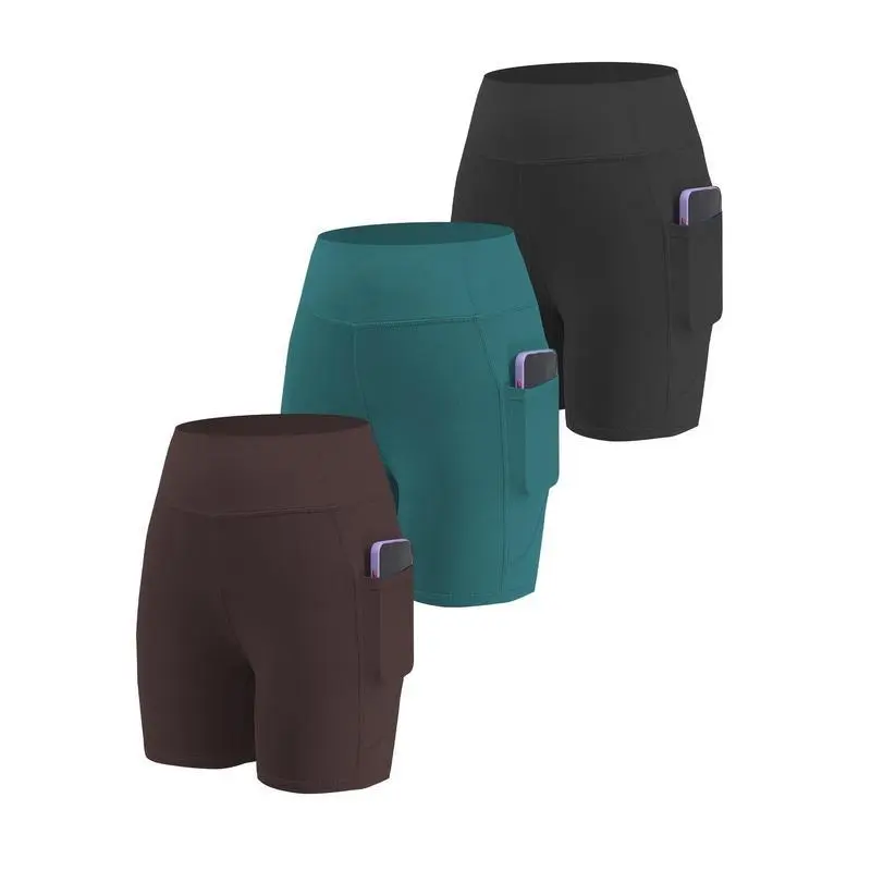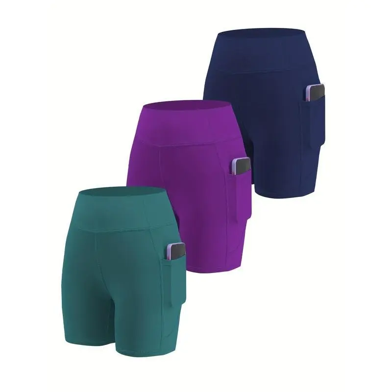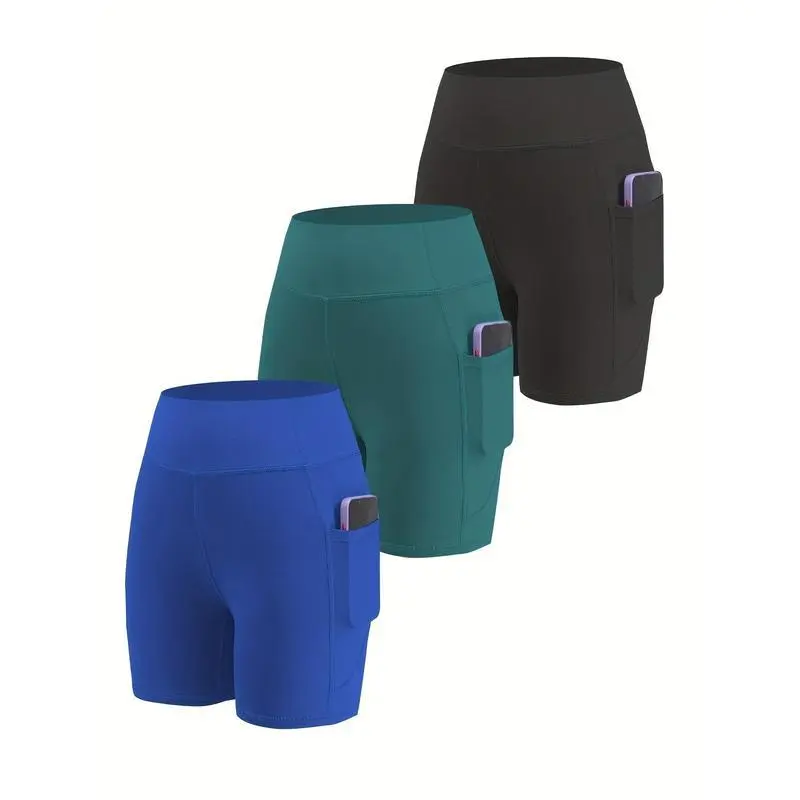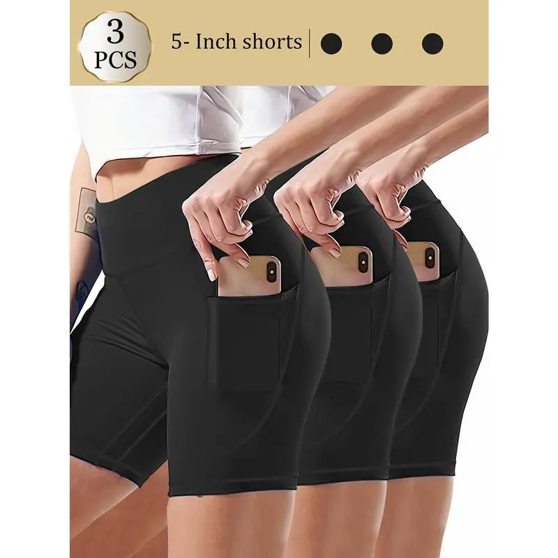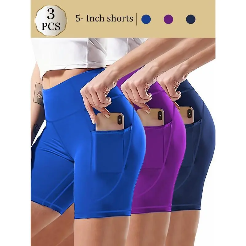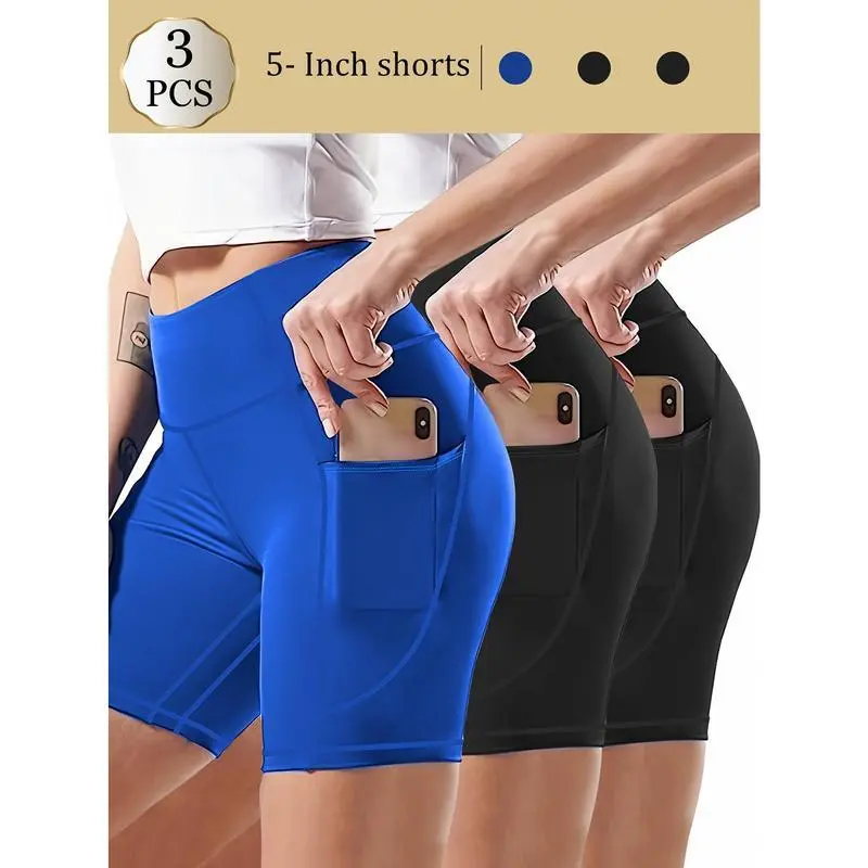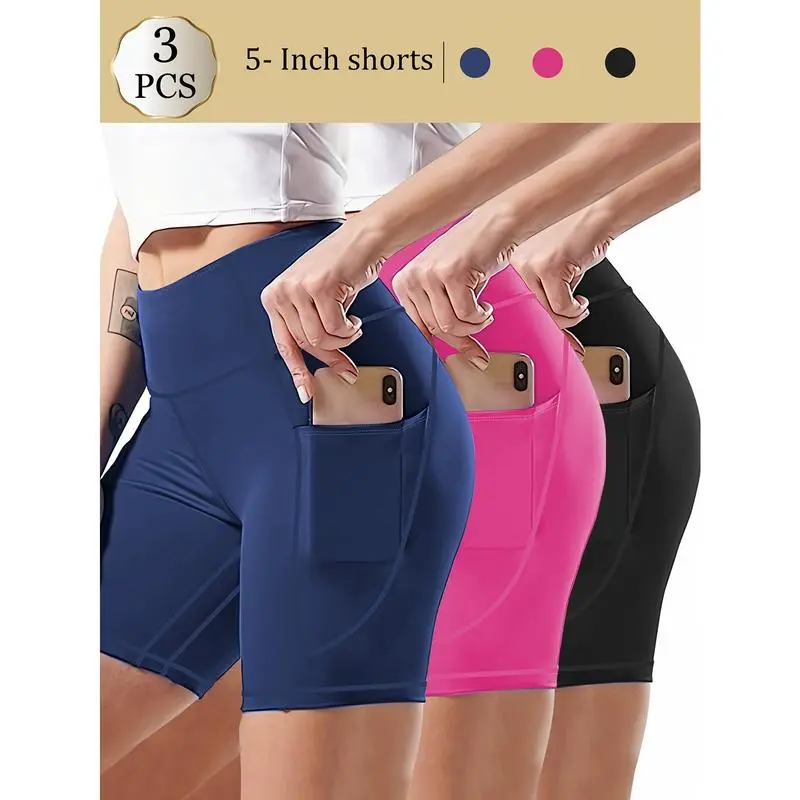3-PackWomen'sSportsShortsSet,HighWaist,Breathable,SummerSportsCyclingShorts,PocketStretchableTightFitnessWear,SuitableforDailyExerciseandCasualUse