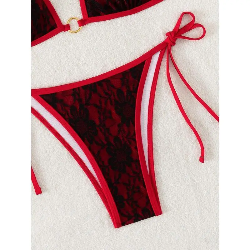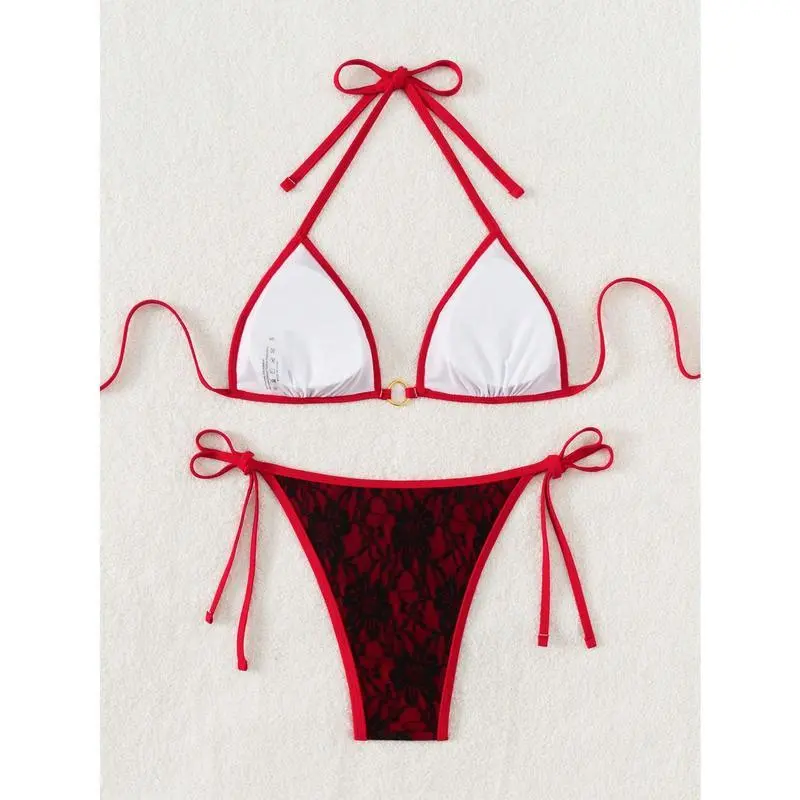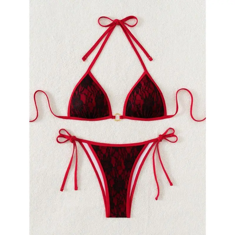 SwimWomen's2025VacationBeachLaceHalterTieSexyBikiniSetSummer