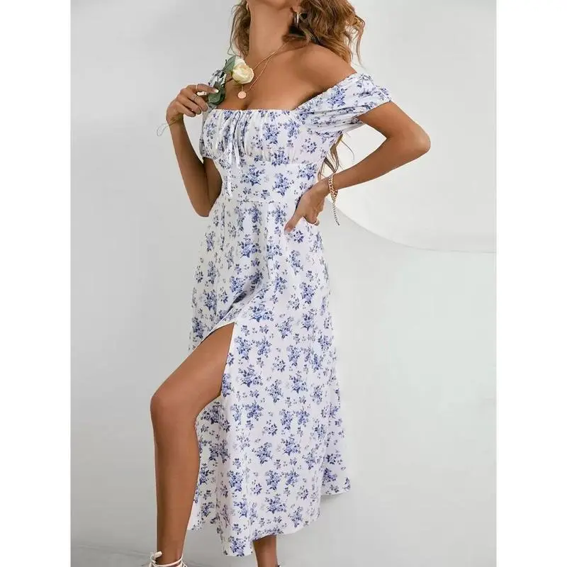 AlloverFloralKnotSplitThighA-LineMilkmaidDressMaxiVacationBeachOutfitsWomen