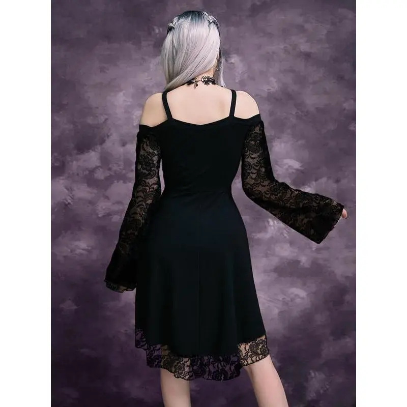 Women's Cold Shoulder Flounce Sleeve?Floral Lace Dress, Gothic Punk Style?Criss Cross Grommet Eyelet A Line Dress for Party Holiday, Ladies Clothes for All SeasonsGift