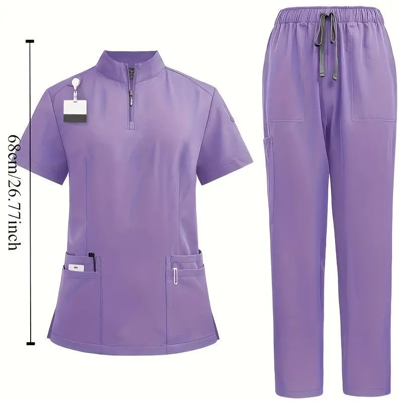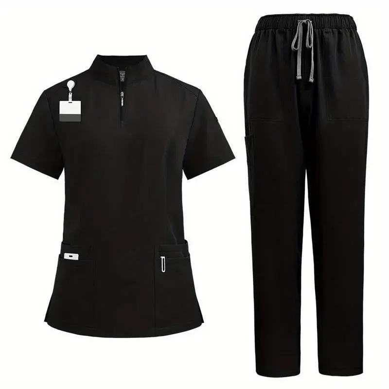 Stand-upCollarZipperWorkUniform,StraightPants,Polyester,MachineWoven,FittedStyle,WorkwearwithPocketsWomenswearMinimalist