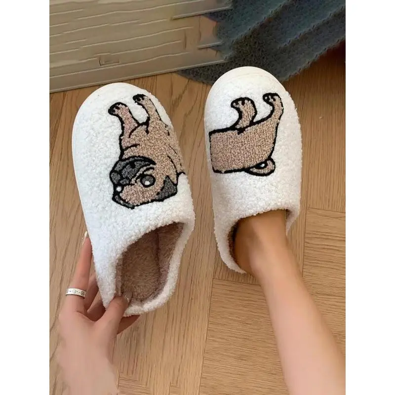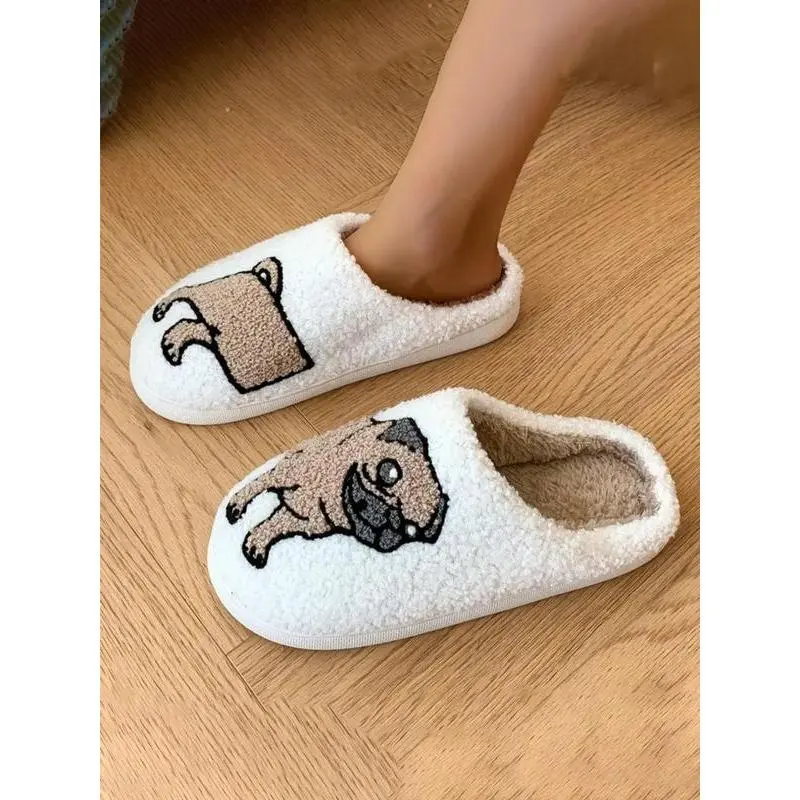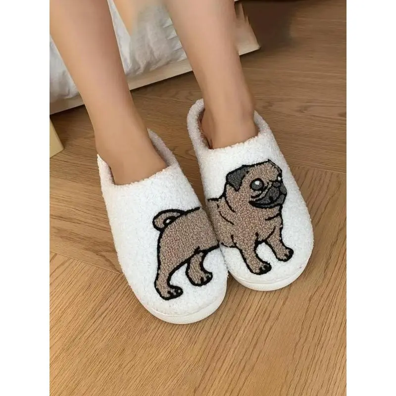Cute Cartoon Dog Pattern Plush Slippers, Casual Soft Comfortable Home Slippers, Warm Slippers for Indoor & Outdoor Use for Fall & Winter