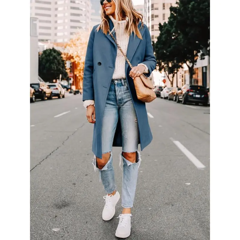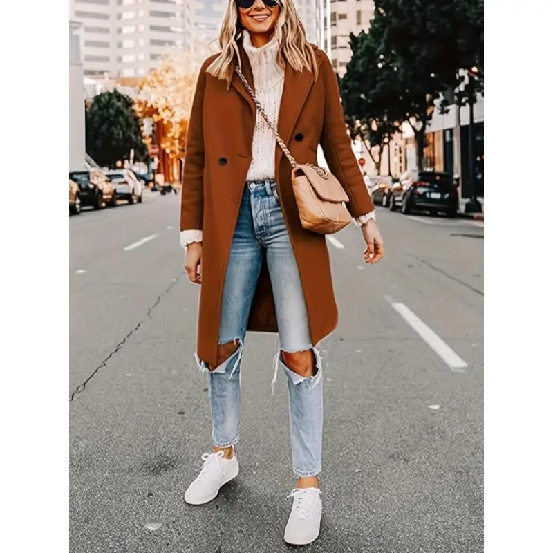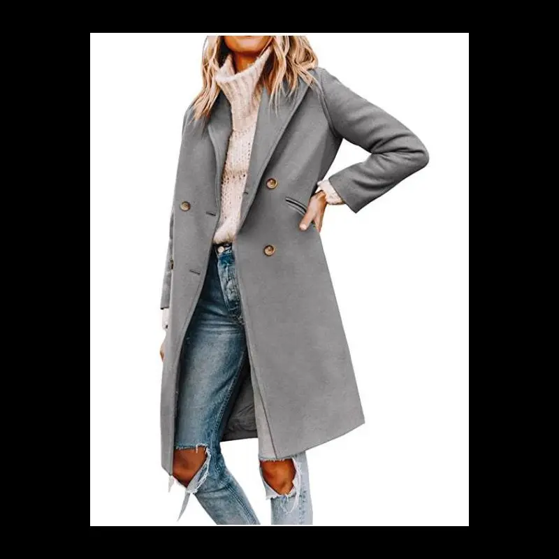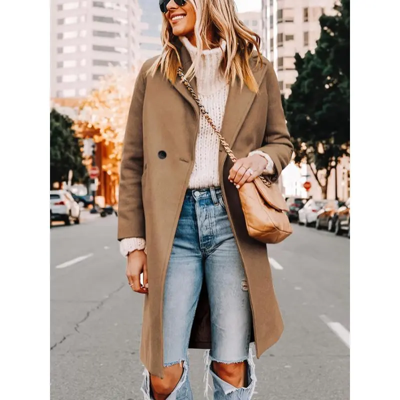 Women'sWinter10%WoolCoatCasualDouble-breastedBlendedMid-lengthWoolenCoat