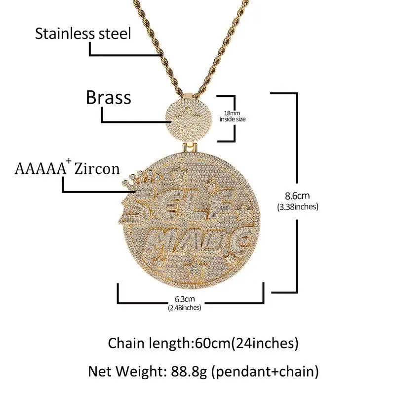 Europe and the United States hip-hop personality exaggerated big disk selfmang letter pendant full of zircon overbearing tide cool men golden necklace