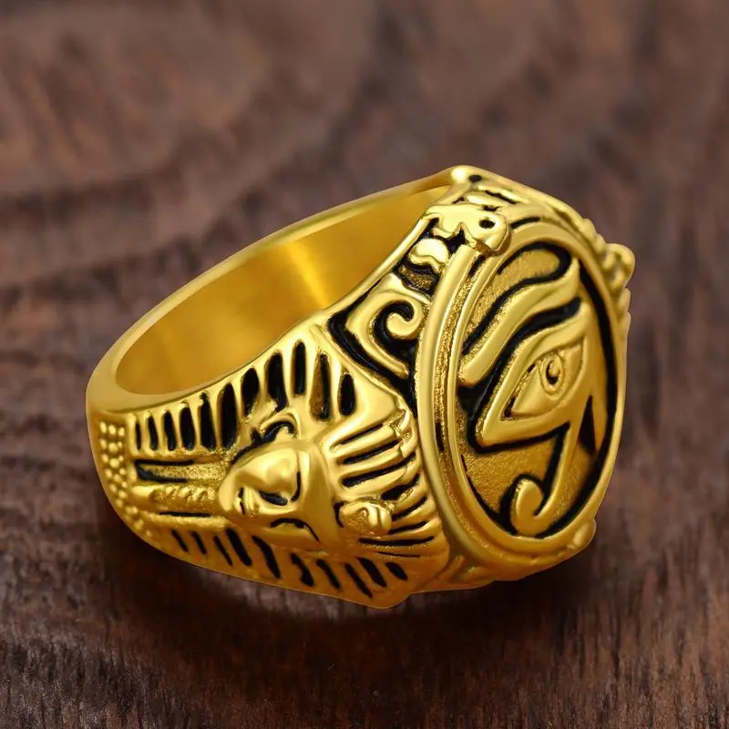 Egyptian Eyes of Ra Ring Ankh Signet Chunky Ring Ancient Egyptians Symbol Wadjet Eye Protection Retro Vintage Ring Jewelry for Men Women