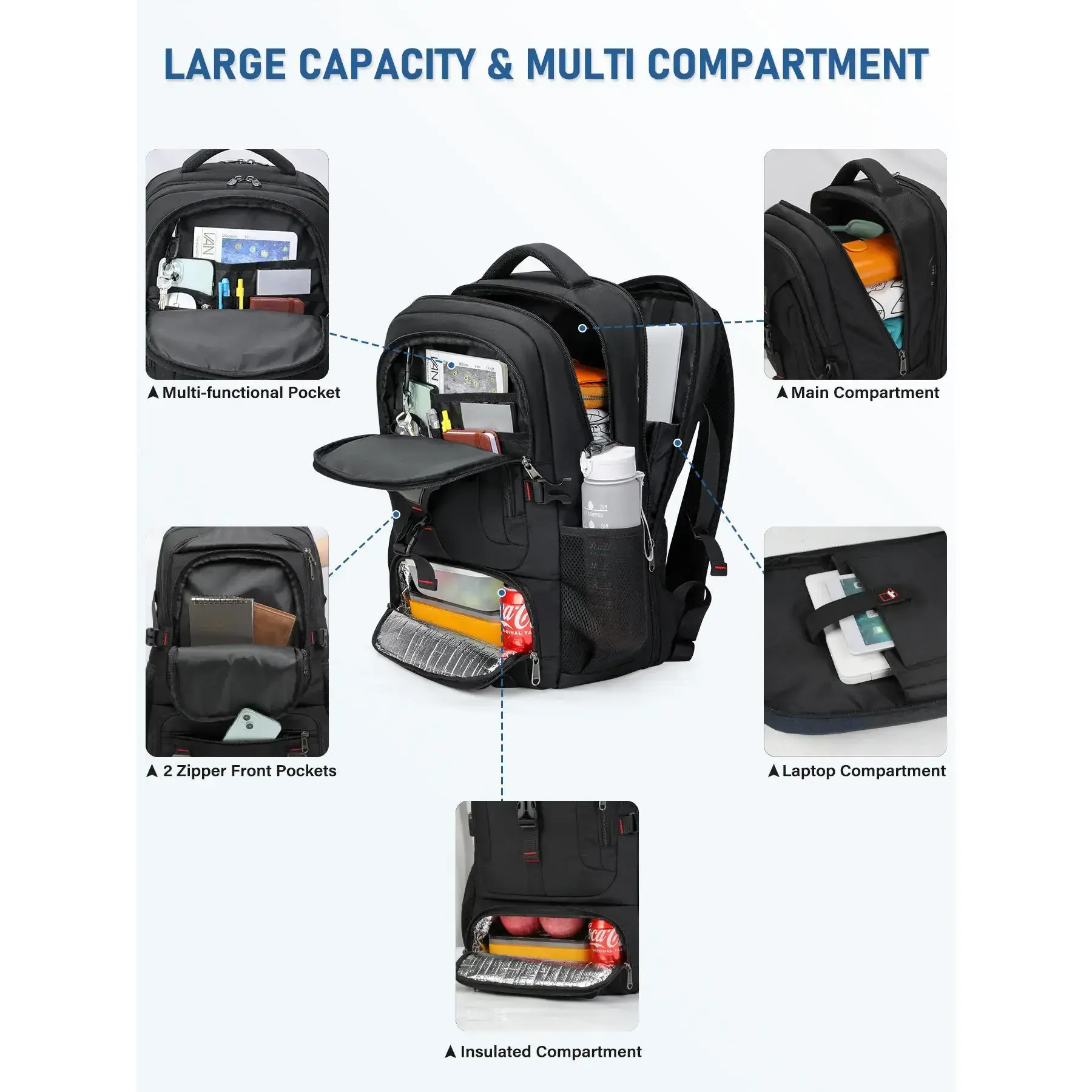 Solid Color Backpack with Usb Charging Port, Large Work Backpack with Insulated Bag, Computer Backpack for School College Business