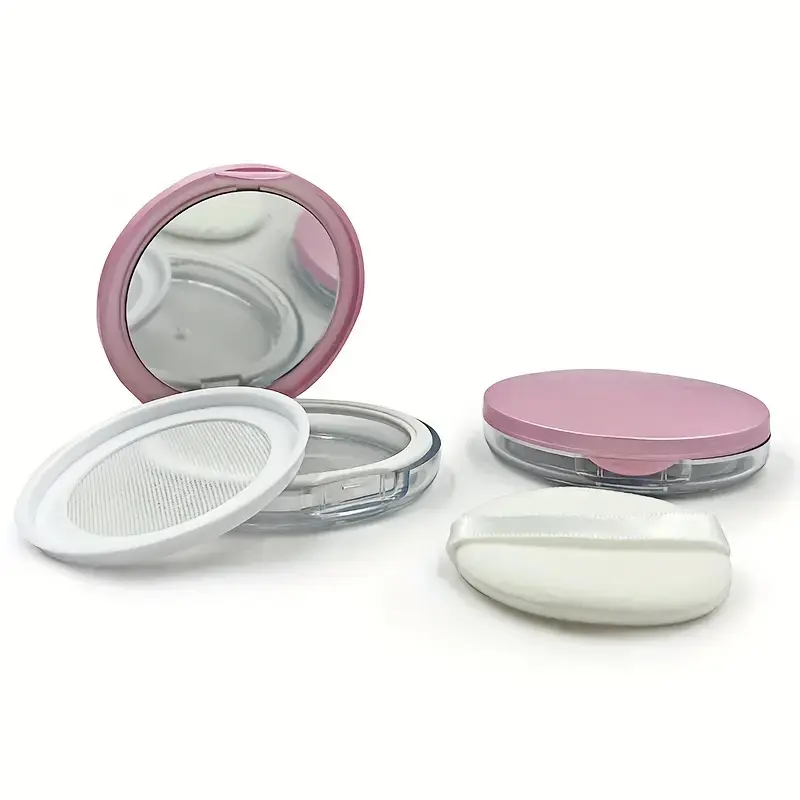 A Slim Empty Loose Powder Box, Powder Puff Box with Elastic Mesh Filter and Mirror, Cushion Sponge Empty Loose Powder Box, Makeup Loose Powder Box, Suitable for Daily Use Or Travel