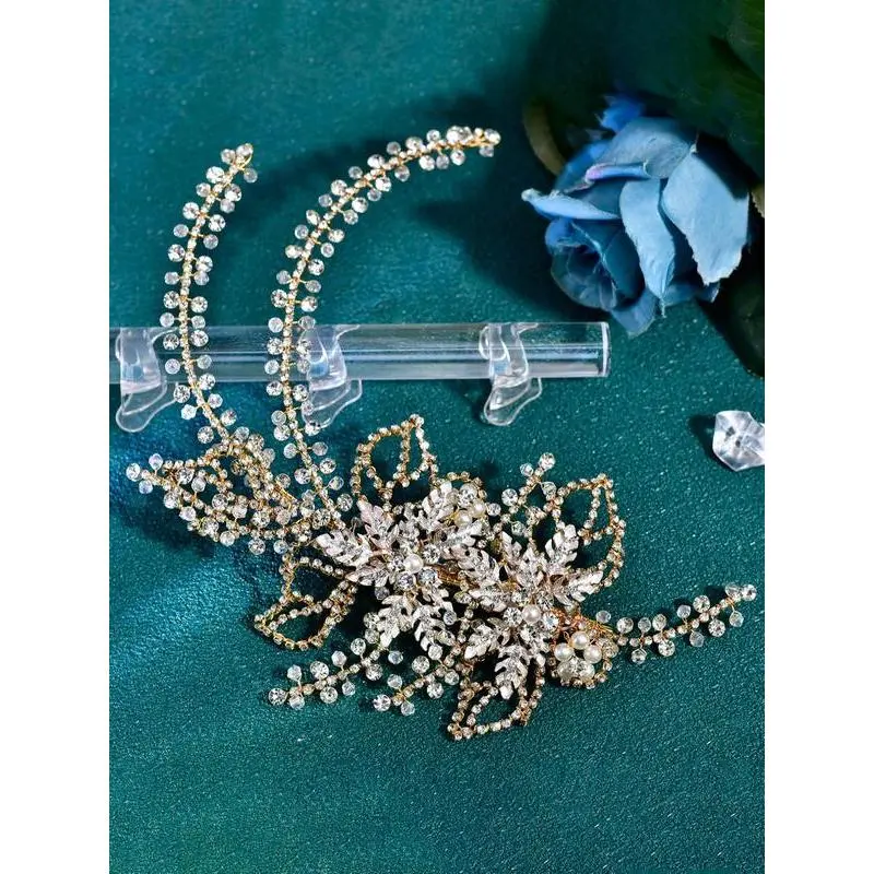 Rhinestone & Faux Pearl Decorated Hair Clip, Elegant Flower Design Headwear for Wedding, Bridal Party Favor Hair Accessory