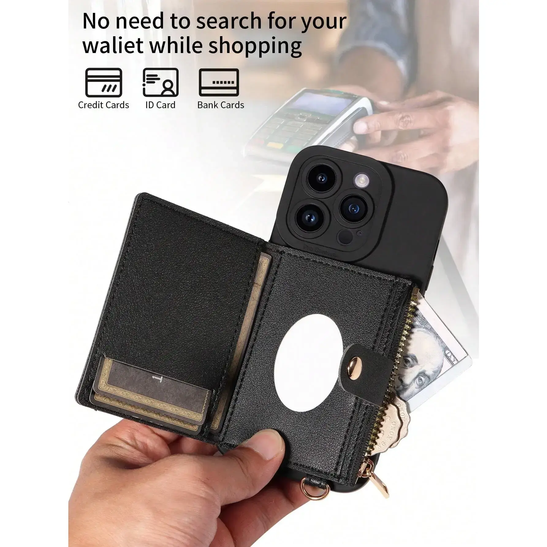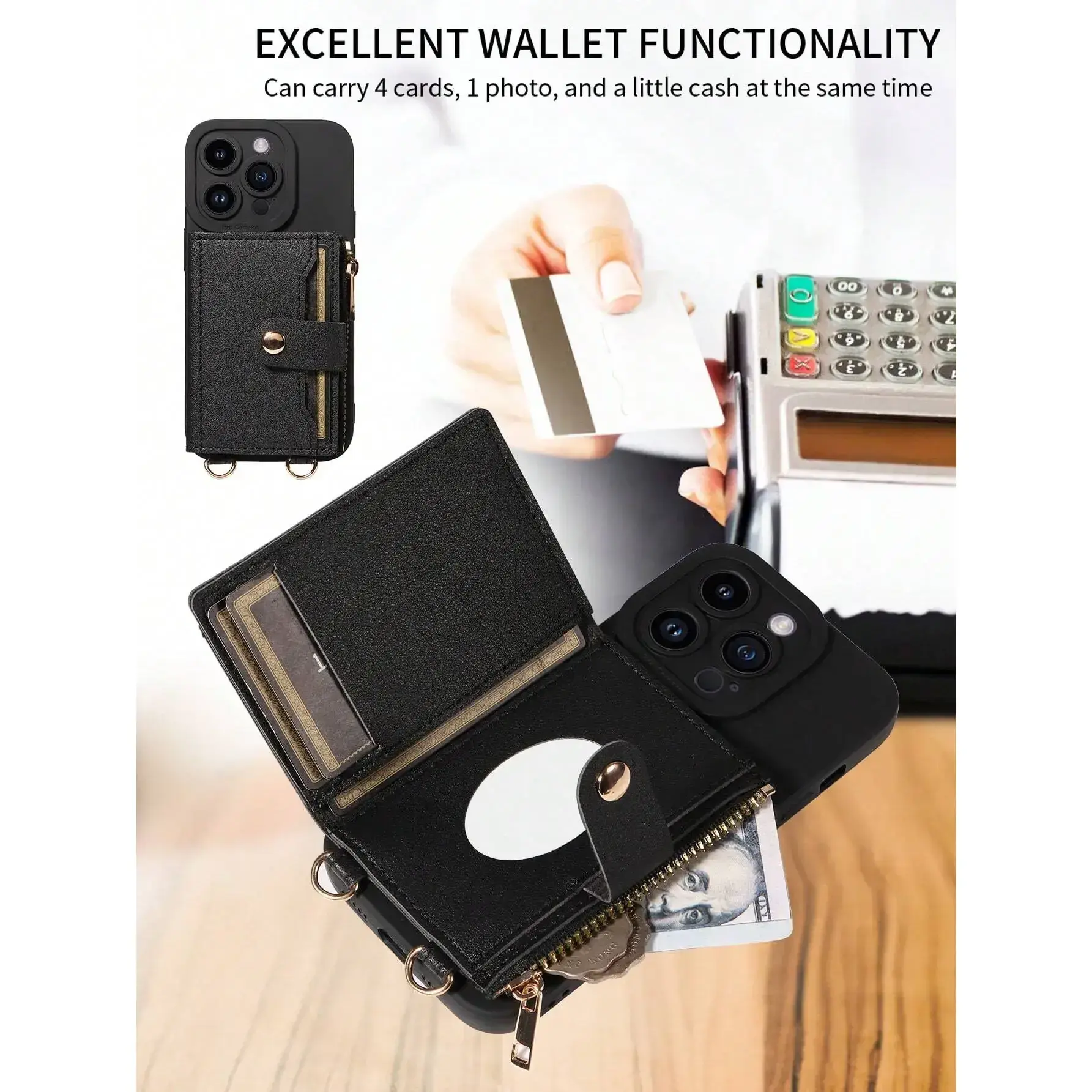 This multifunctional PU leather phone case for iPhone offers a convenient and stylish solution to carrying your essentials on-the-go. Easily transition from day to night with this practical yet fashionable phone accessory that combines functionality with style. Stay organized and chic with this all-in-one phone case!