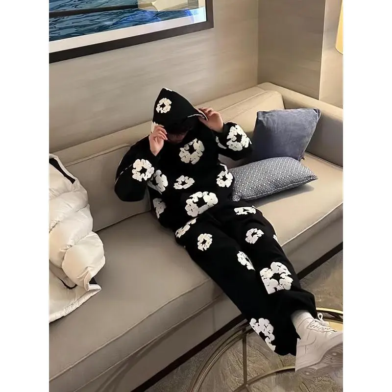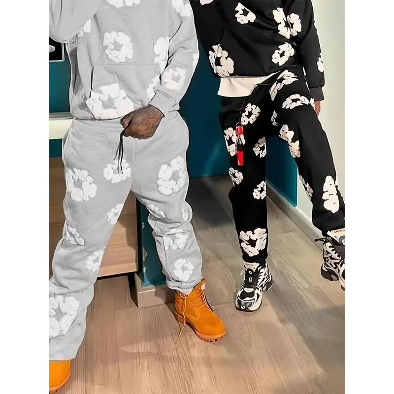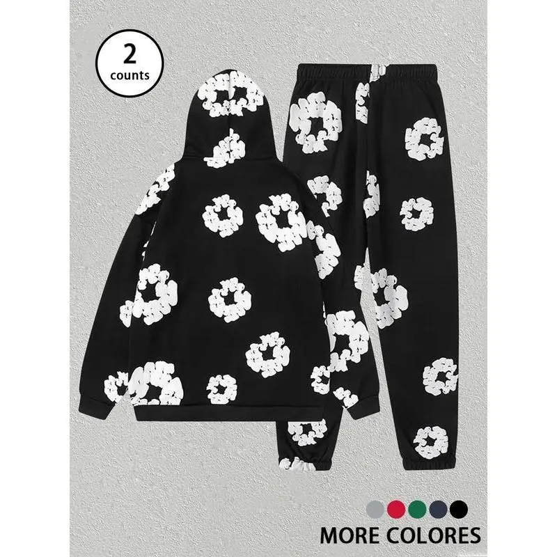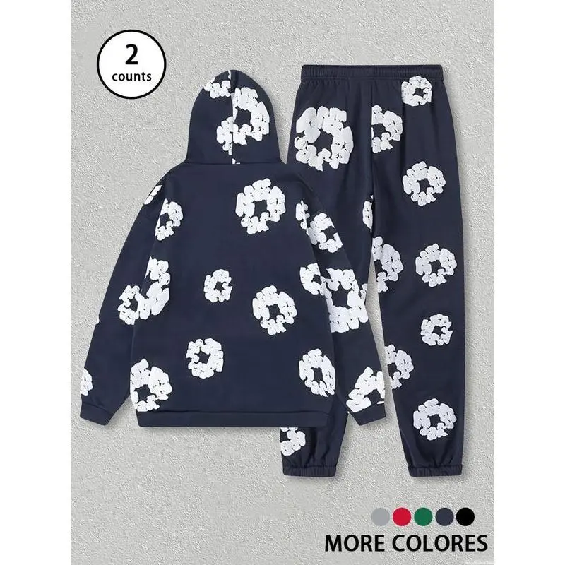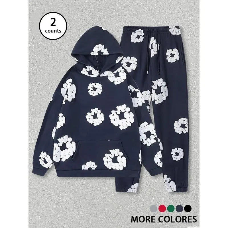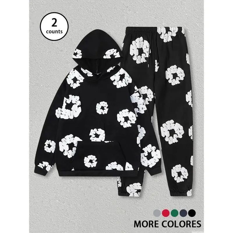Men's All Over Print Drop Shoulder Hoodie & Drawstring Waist Sweatpants Two-piece Set, Casual Fashion Cozy Two Piece Outfits for Daily Wear, Men's Clothes for Fall & Winter