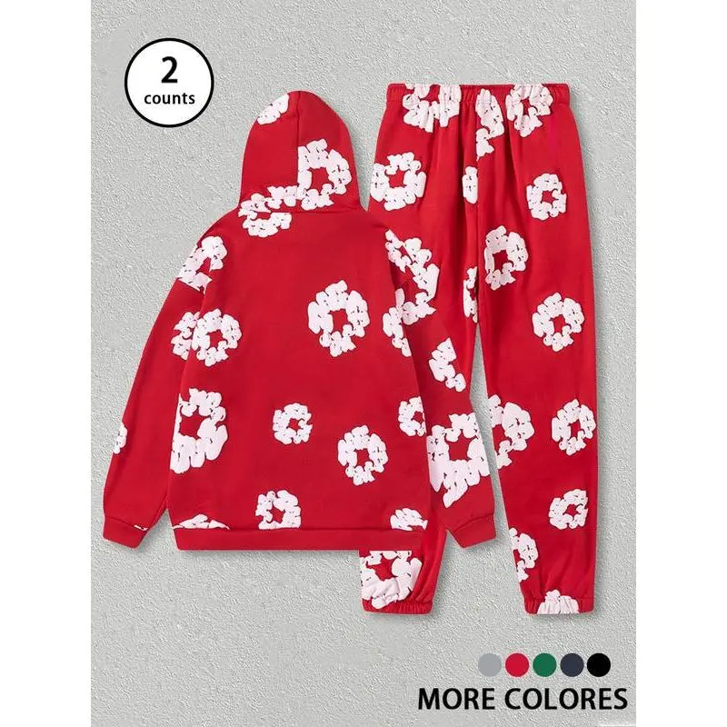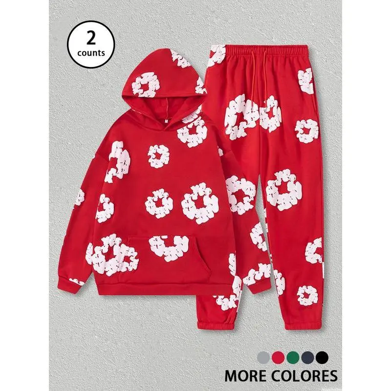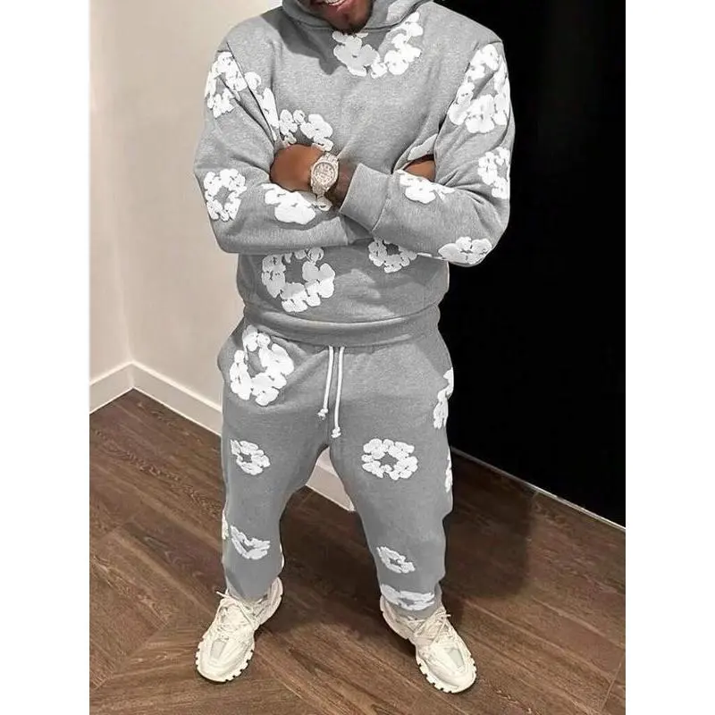 Men's All Over Print Drop Shoulder Hoodie & Drawstring Waist Sweatpants Two-piece Set, Casual Fashion Cozy Two Piece Outfits for Daily Wear, Men's Clothes for Fall & WinterGift