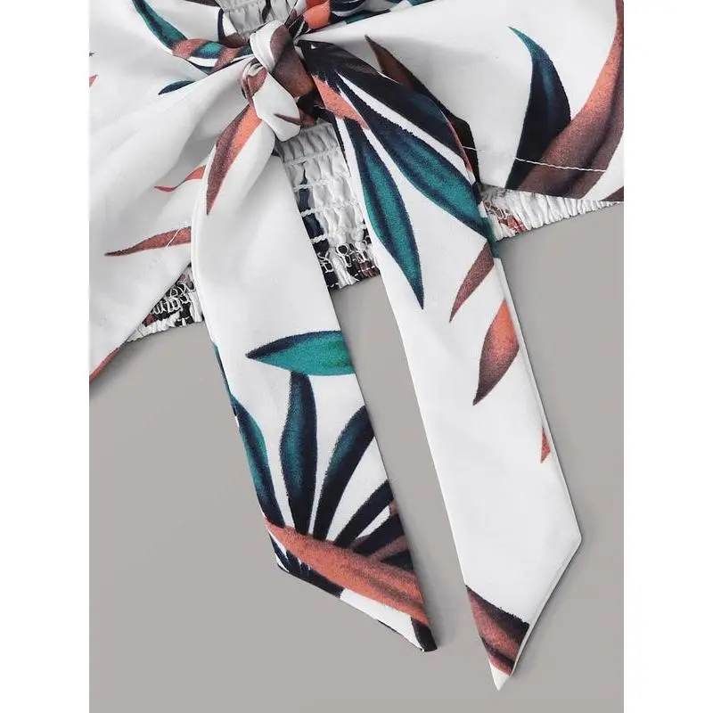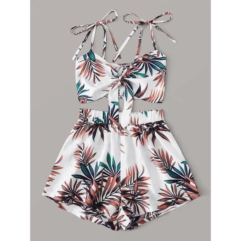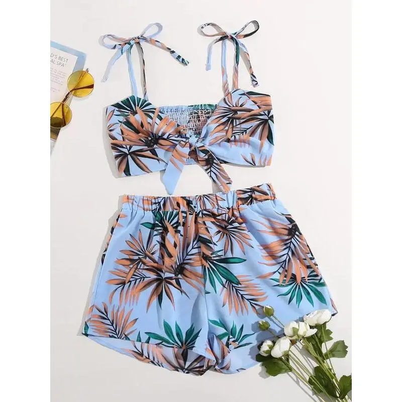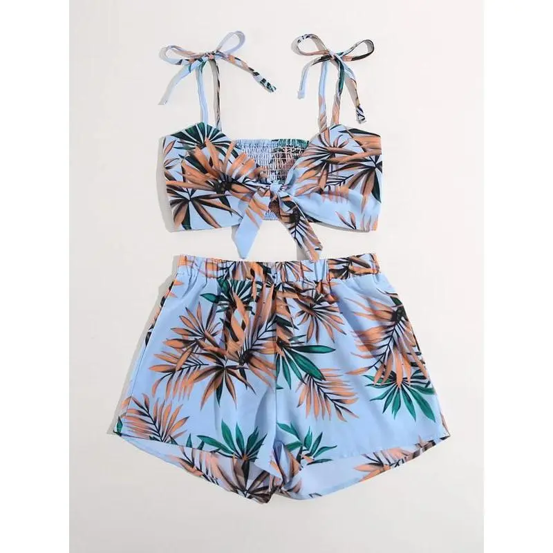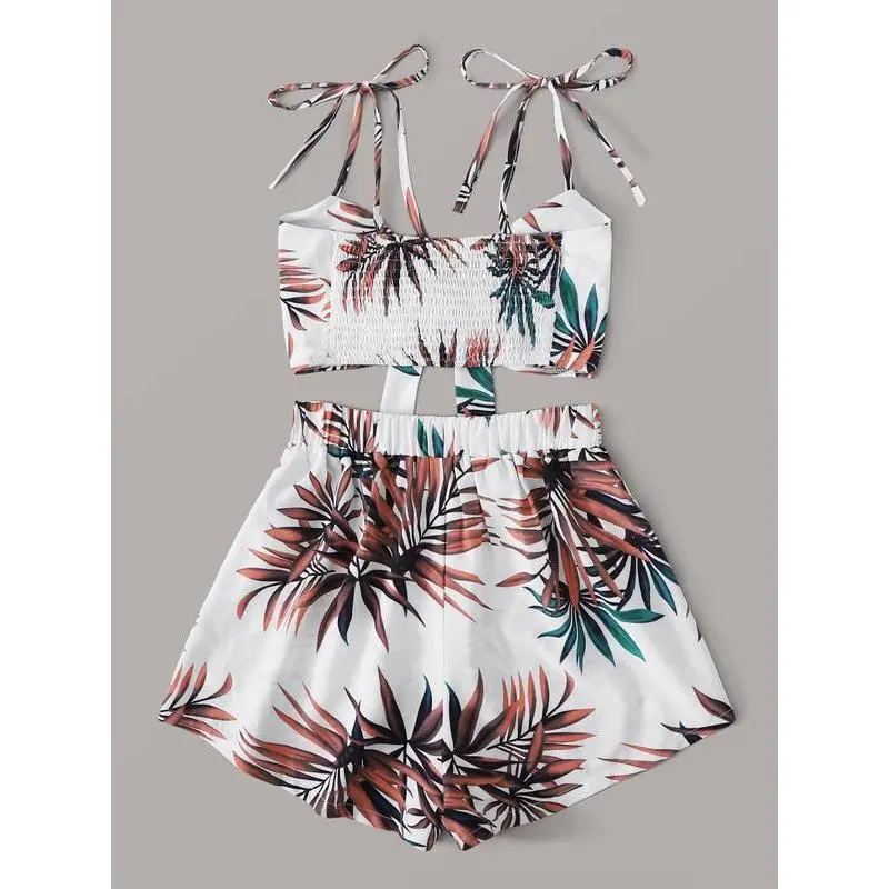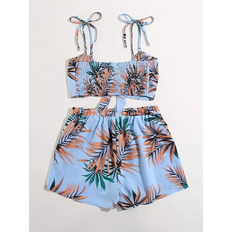 Women's Leaf Print Crop Top & Shorts Set, Casual Fashion Two-piece Set for Beach Vacation Holiday, Ladies Summer ClothesGift