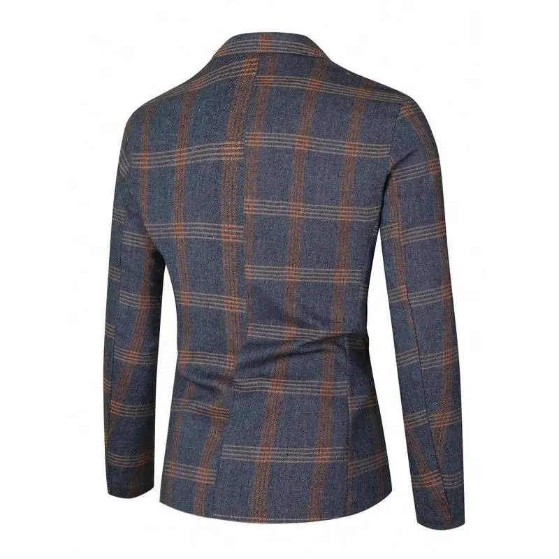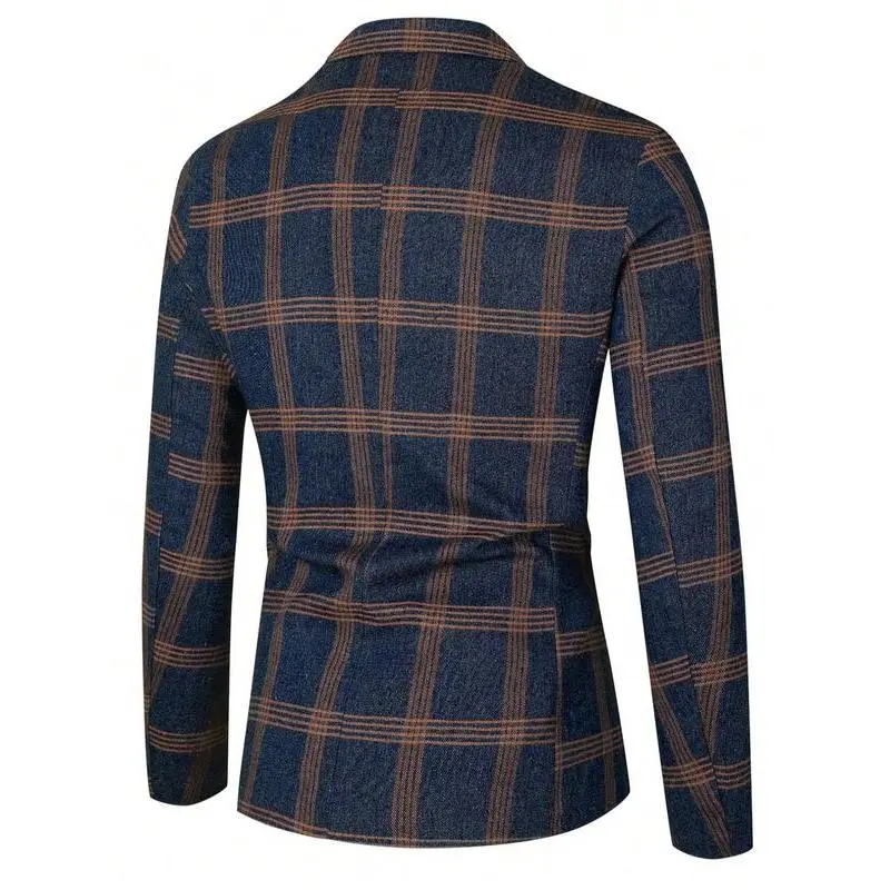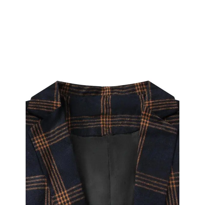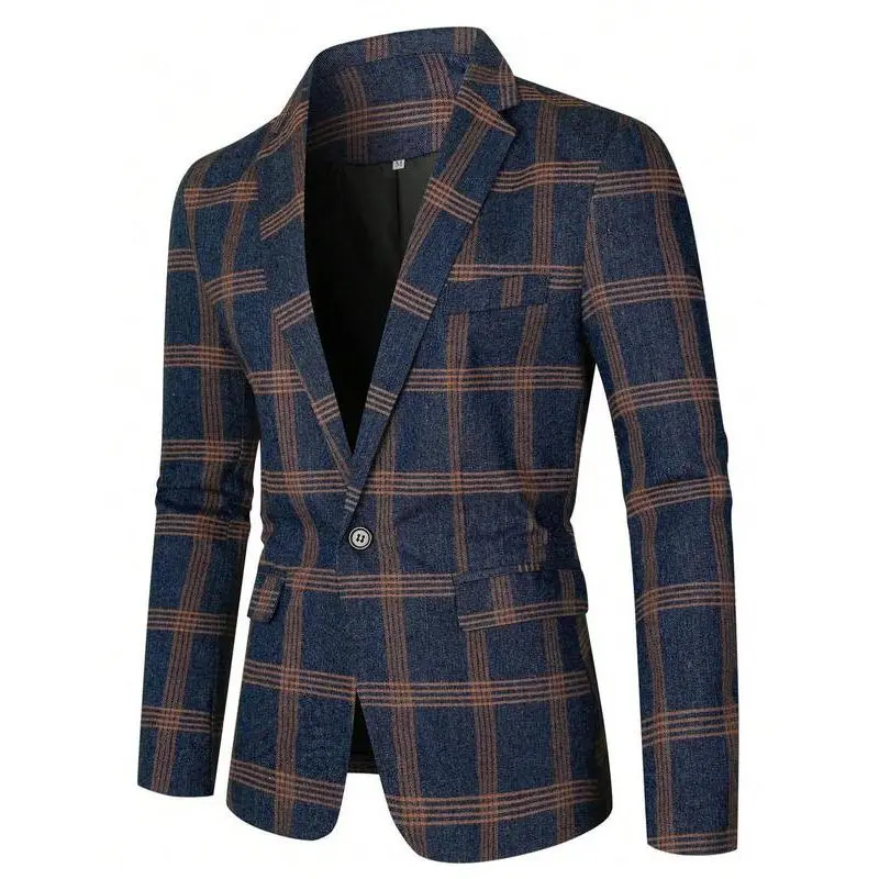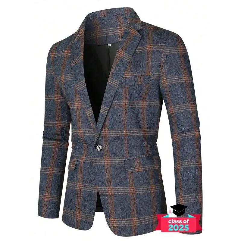 Men's Plaid Print Button Front Flap Pocket Blazer, Regular Fit Tailored Long Sleeve Lapel Neckline Suit Jacket for Business Formal Occasions, Designer Men's Clothes, Fashion Men's Clothing for Fall & Winter, Menswear, Coat, Suit Coats WorkGift